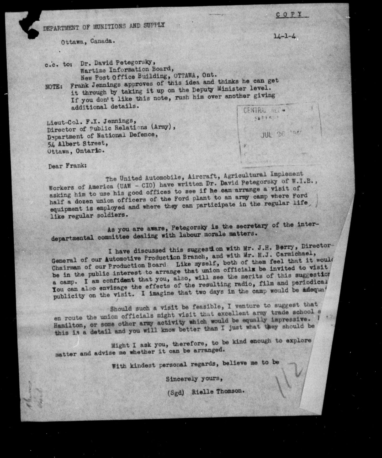 Department of Militia and Defence - Central Registry System - 5290