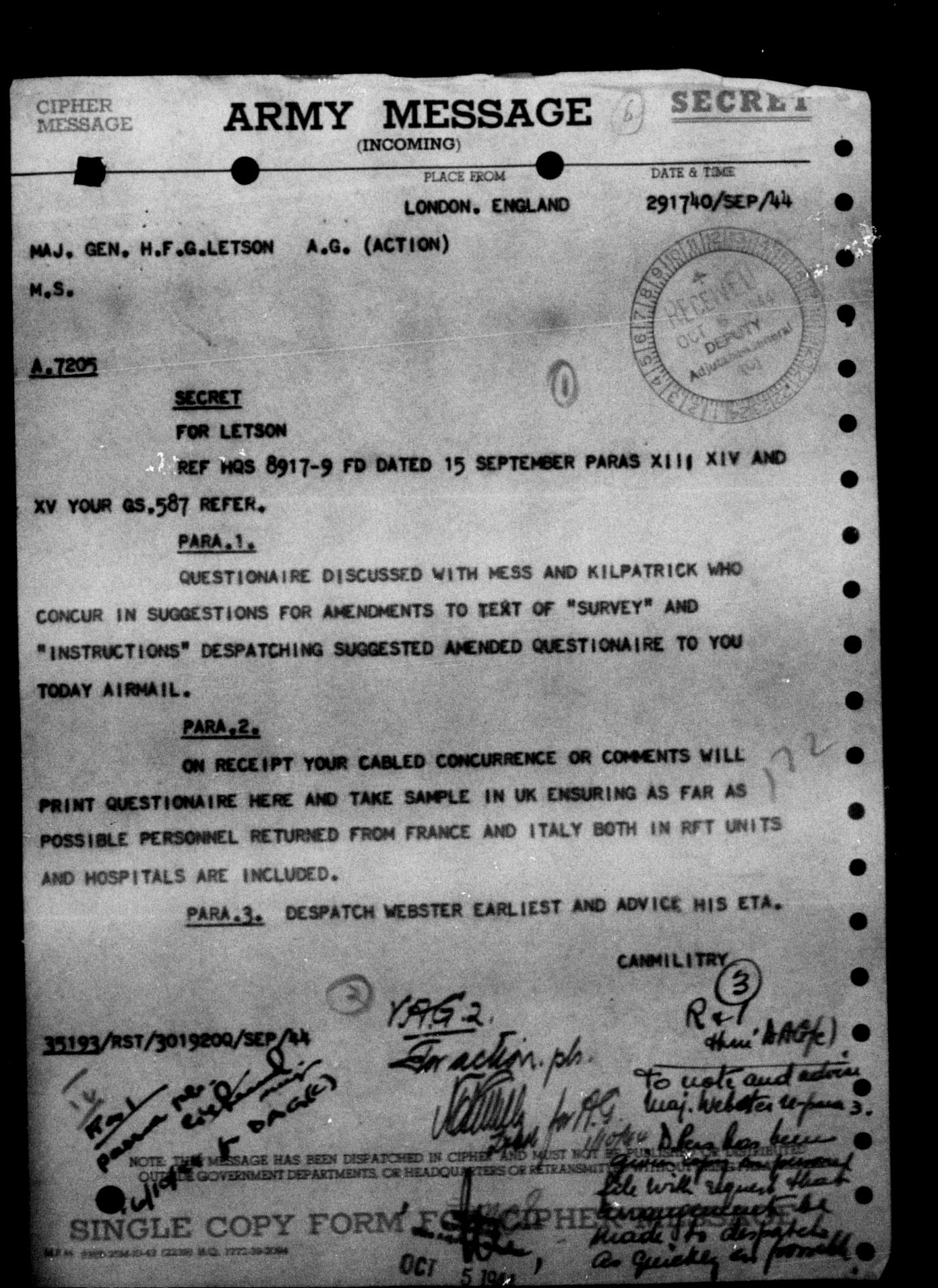 Department of Militia and Defence - Central Registry System - 5291