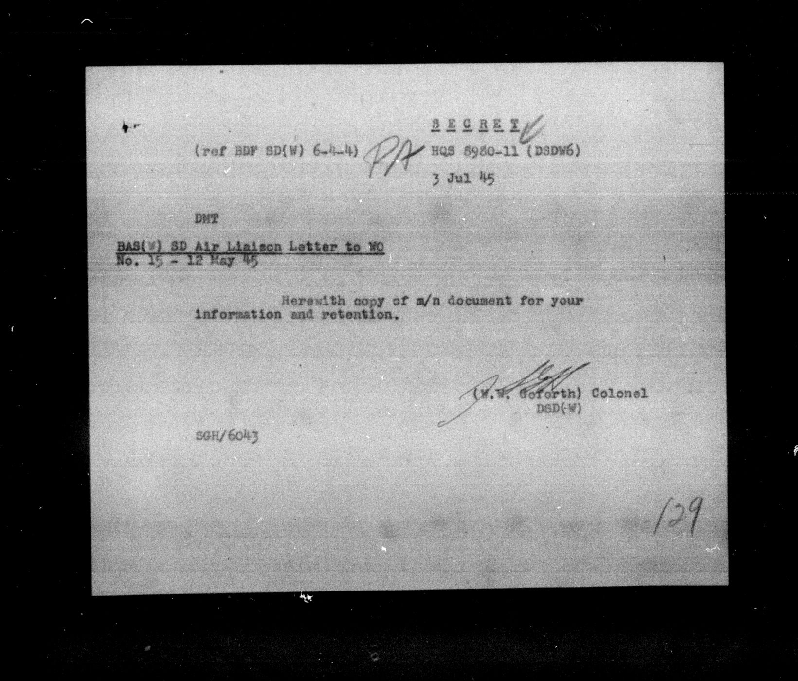 Department of Militia and Defence - Central Registry System - 5299