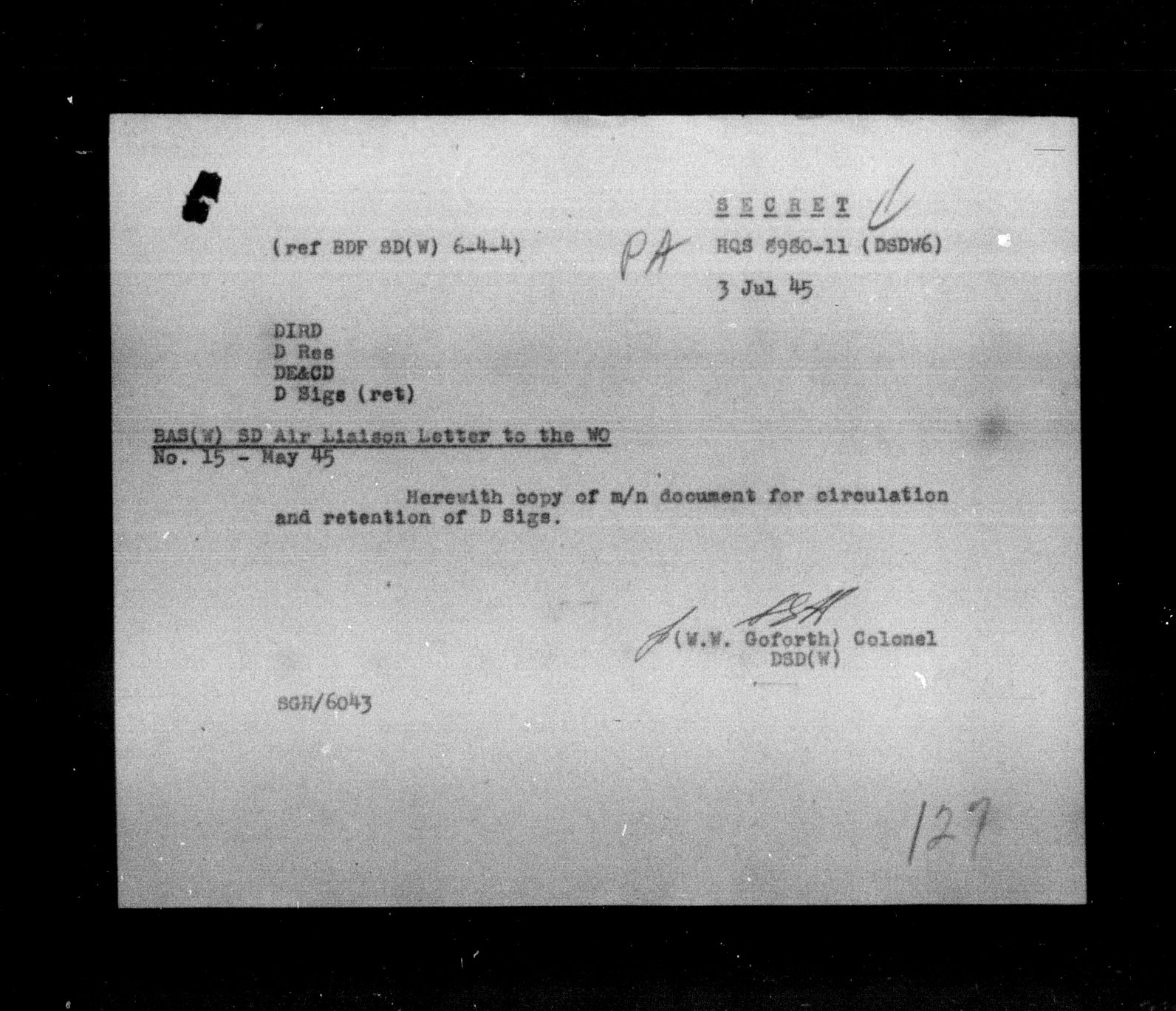 Department of Militia and Defence - Central Registry System - 5299