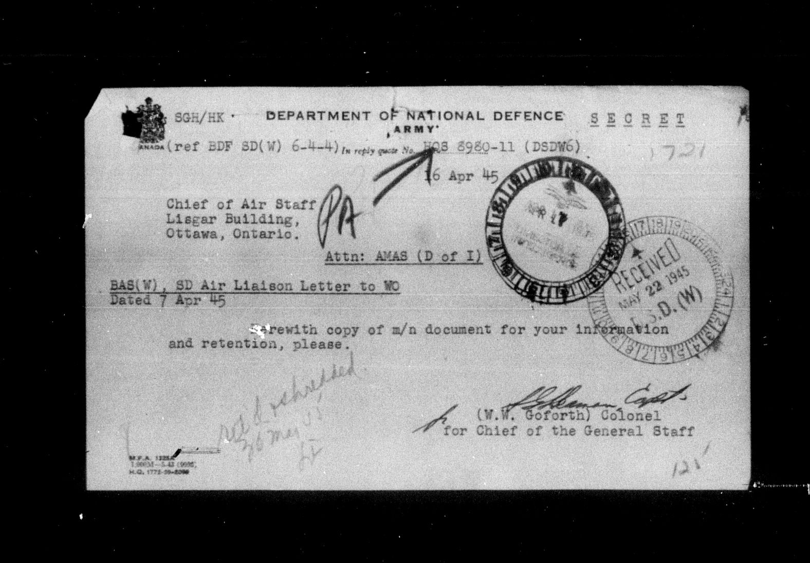 Department of Militia and Defence - Central Registry System - 5299