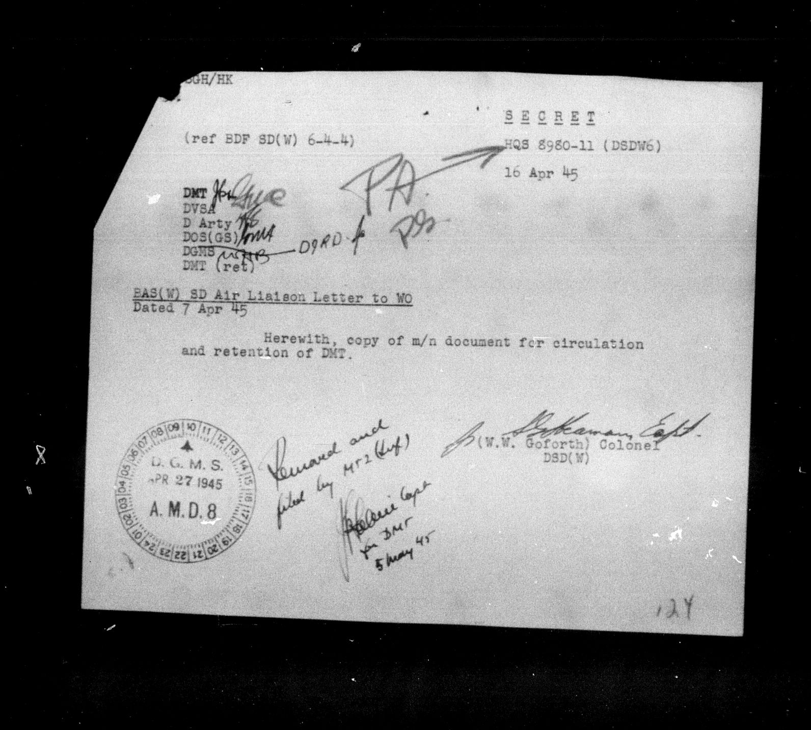 Department of Militia and Defence - Central Registry System - 5299
