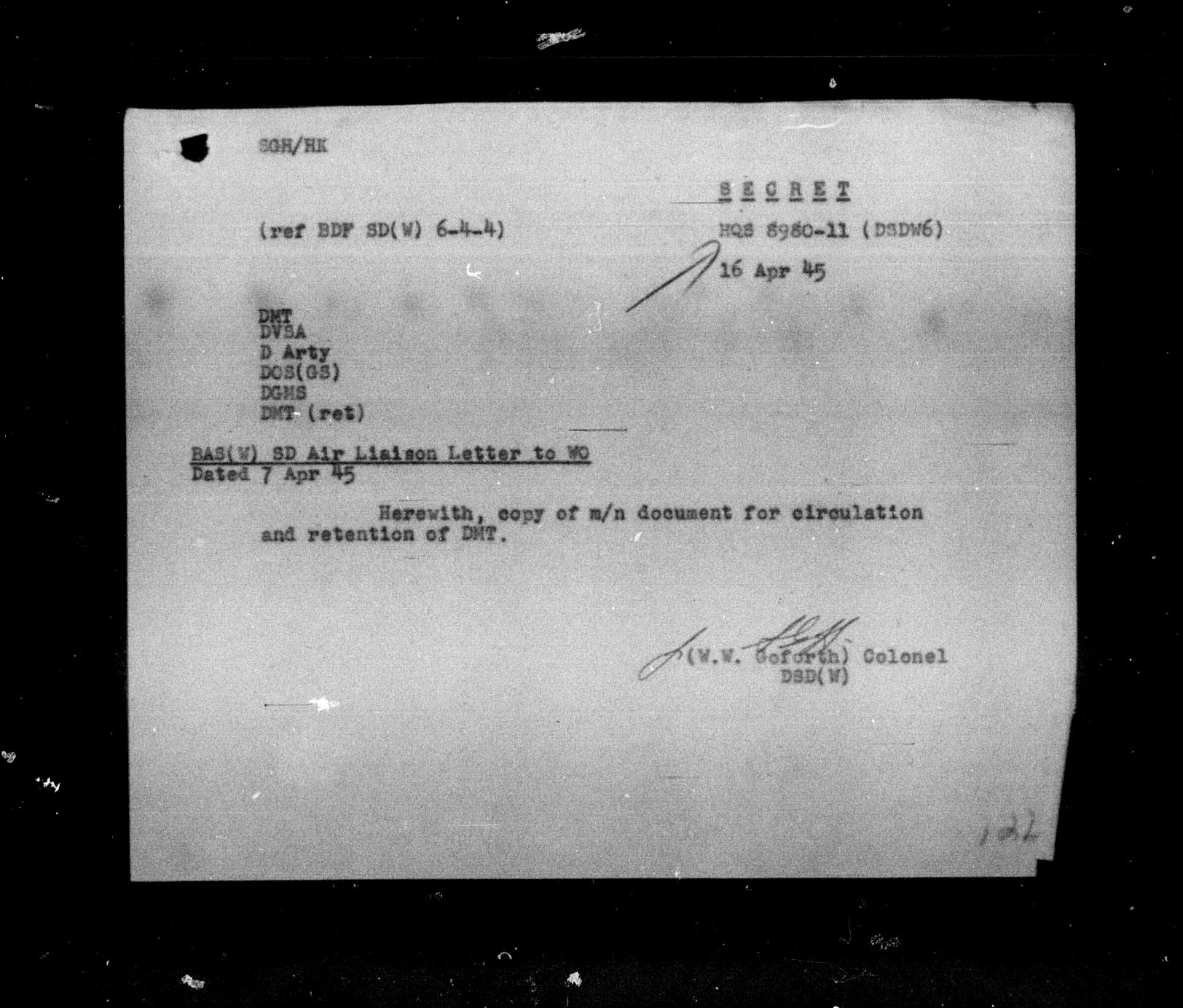 Department of Militia and Defence - Central Registry System - 5299