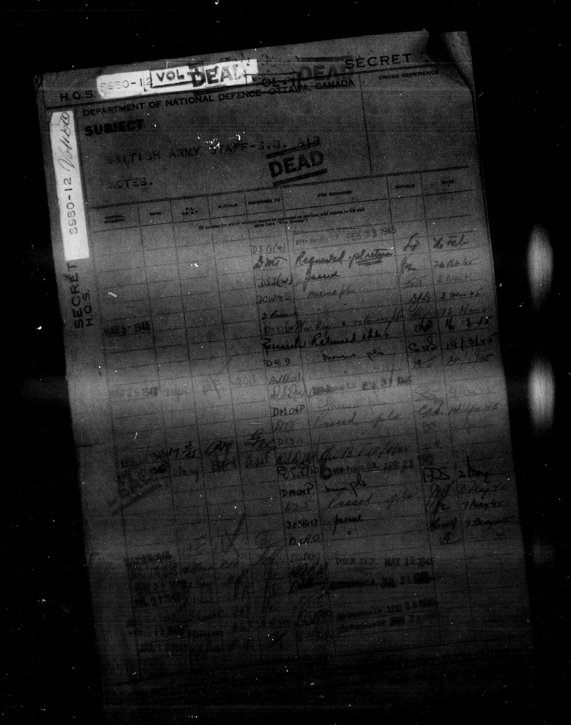 Department of Militia and Defence - Central Registry System - 5299