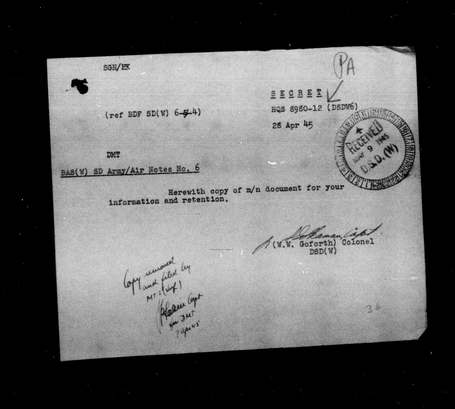 Department of Militia and Defence - Central Registry System - 5299