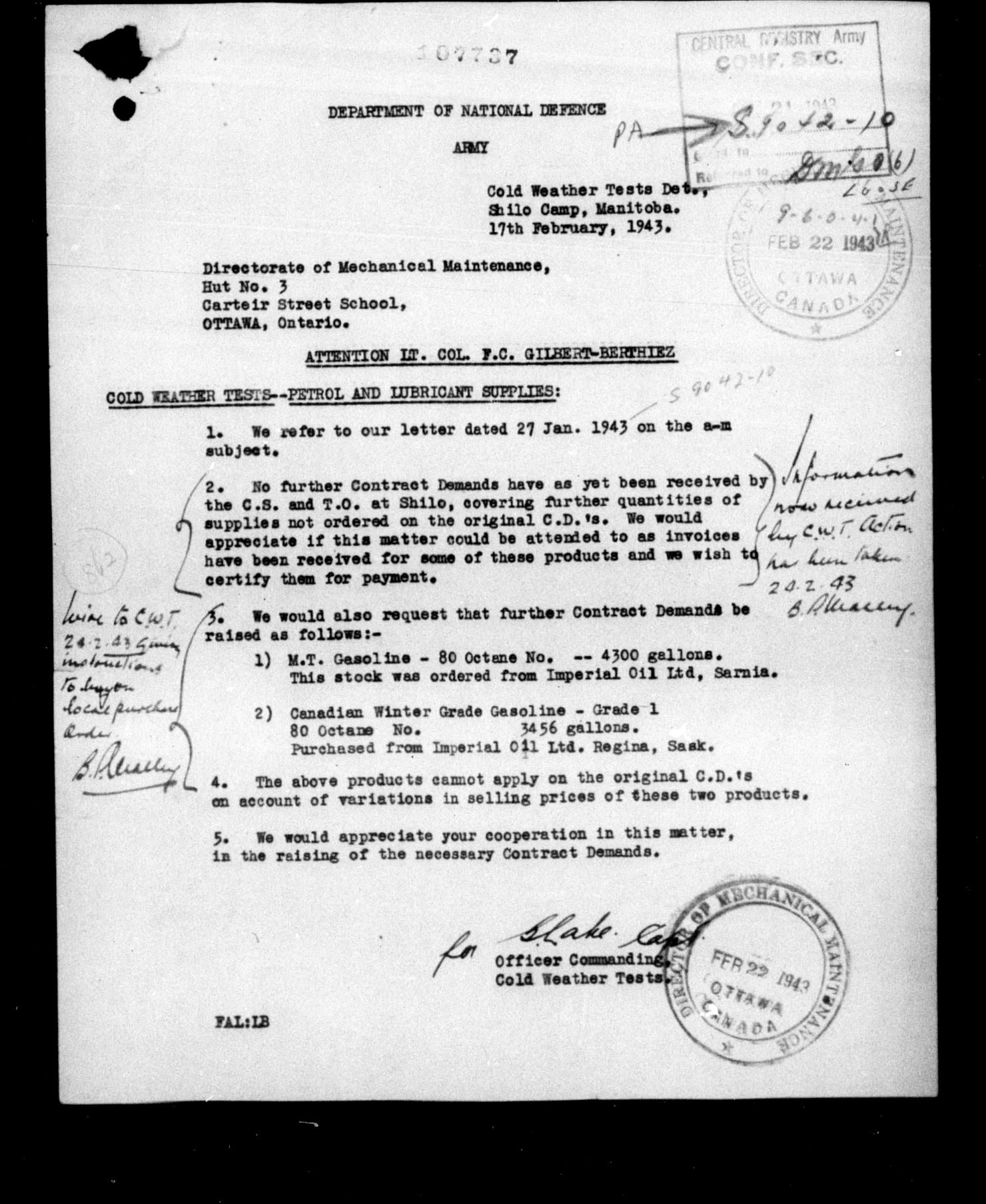 Department of National Defence : 1903 Headquarters Central Registry, subject files, 1866-1950 : C-5330