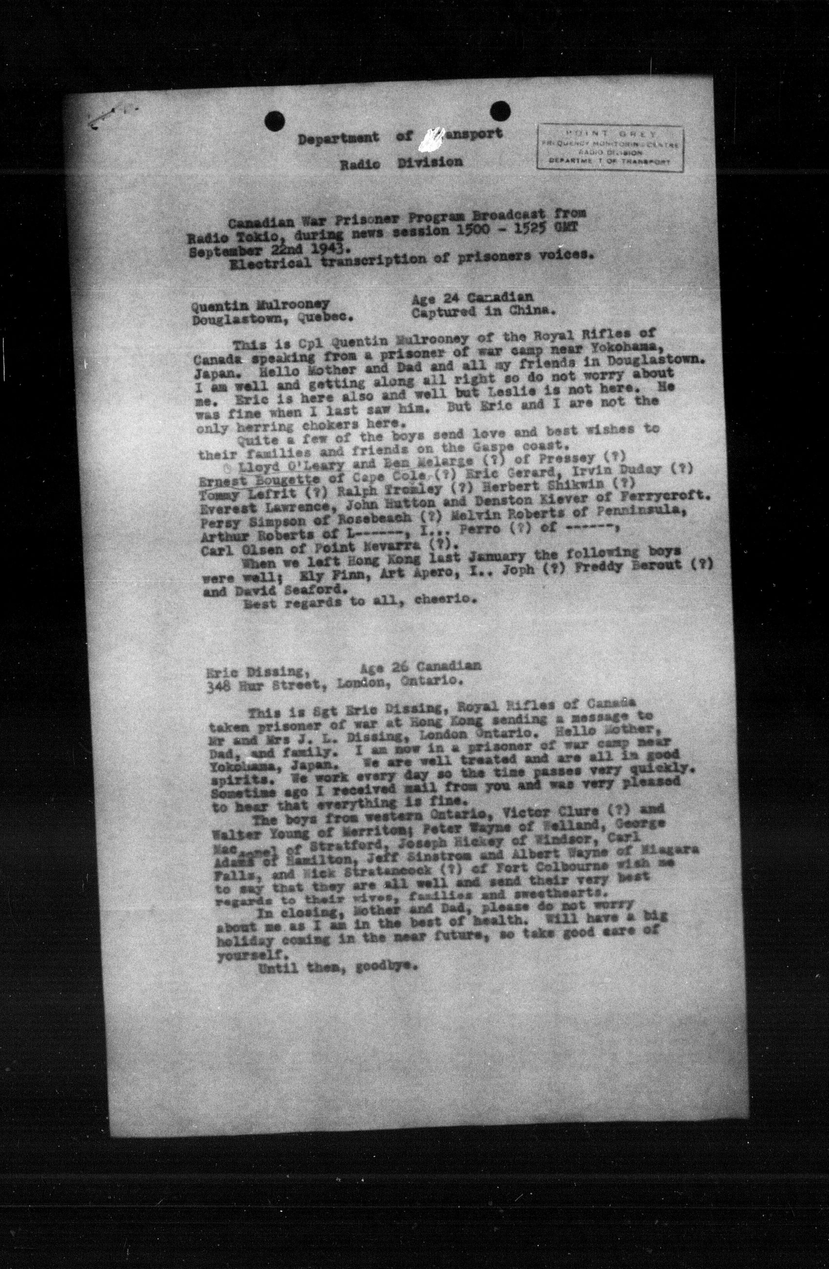 Department of Militia and Defence - Central Registry System - 5340