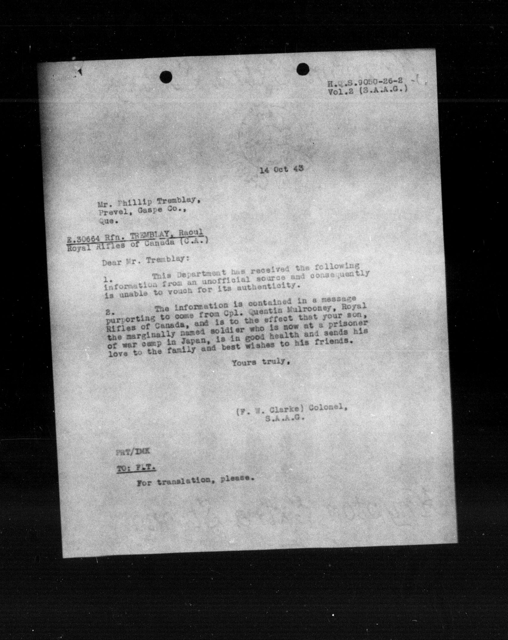 Department of Militia and Defence - Central Registry System - 5340