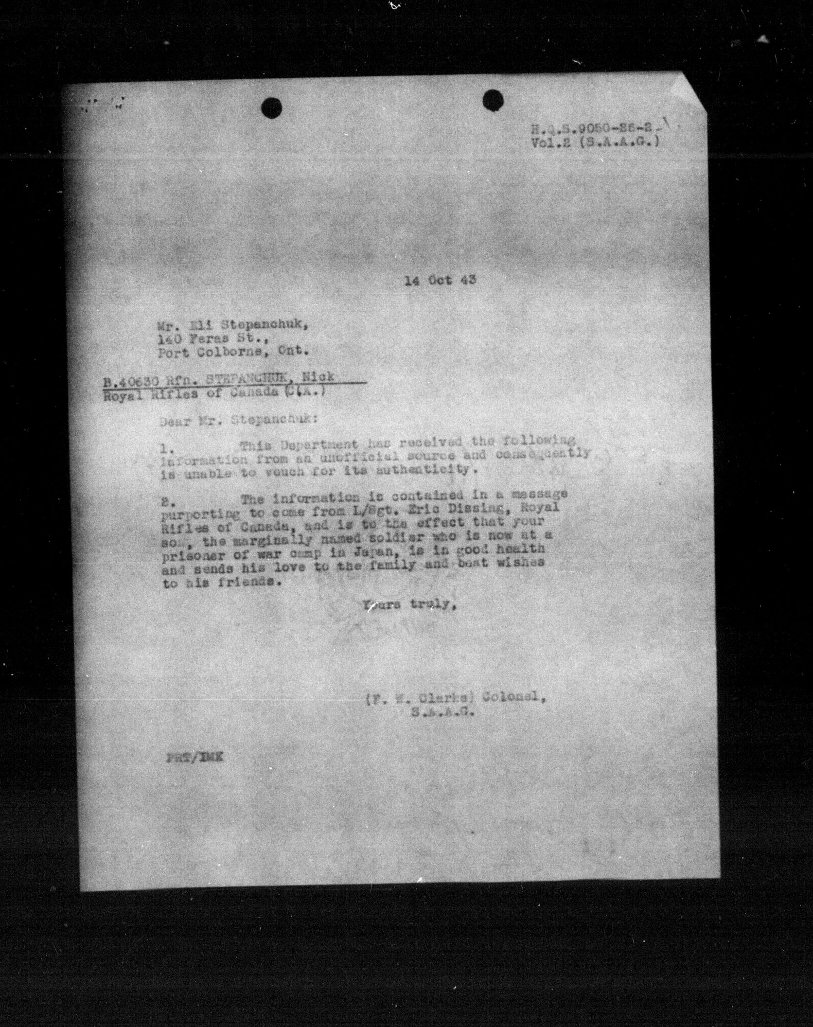 Department of Militia and Defence - Central Registry System - 5340