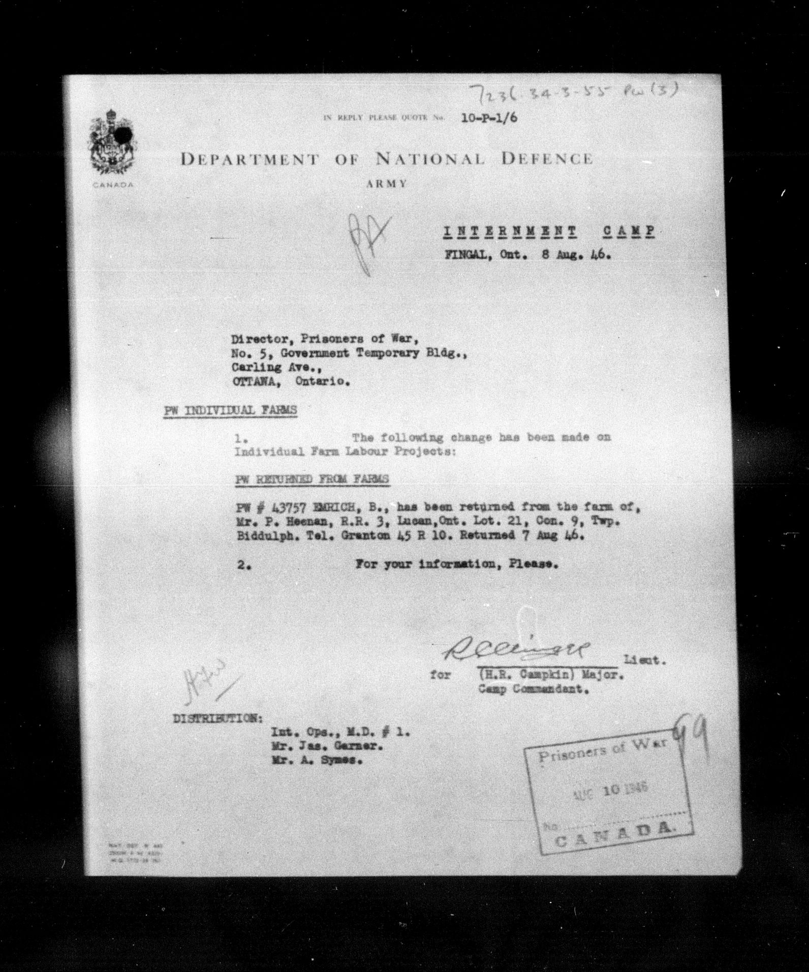 Department of Militia and Defence - Central Registry System - 5385