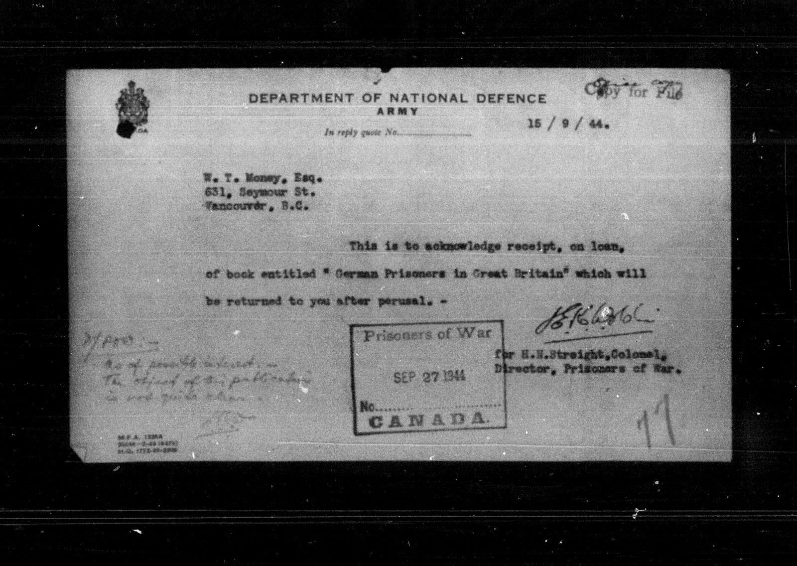 Department of Militia and Defence - Central Registry System - 5389