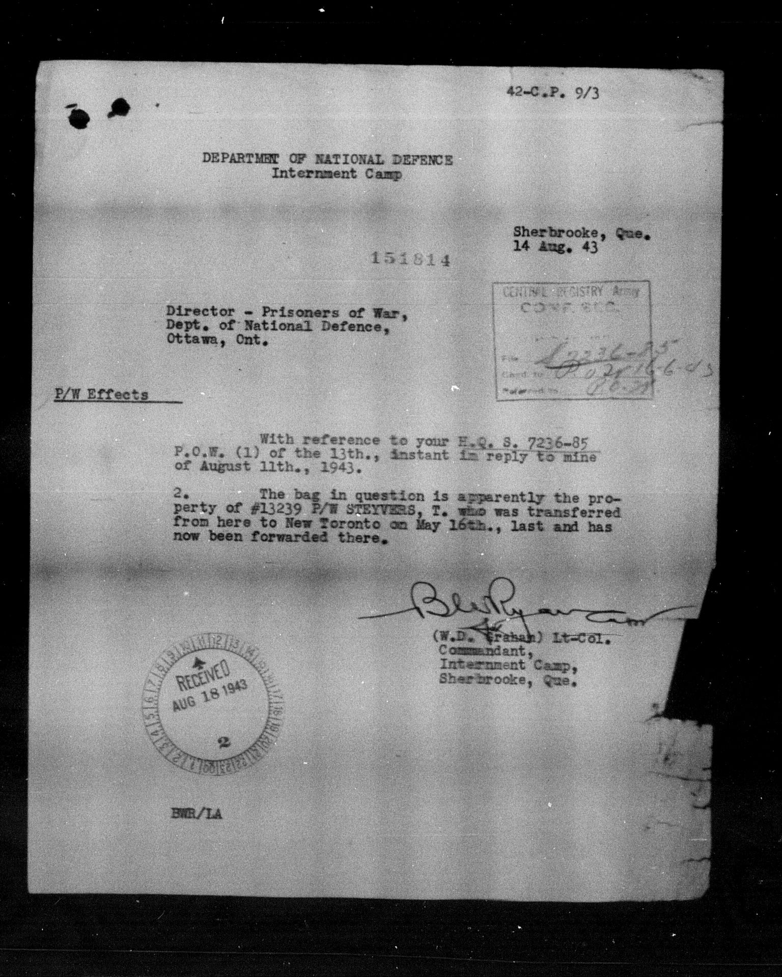 Department of Militia and Defence - Central Registry System - 5405