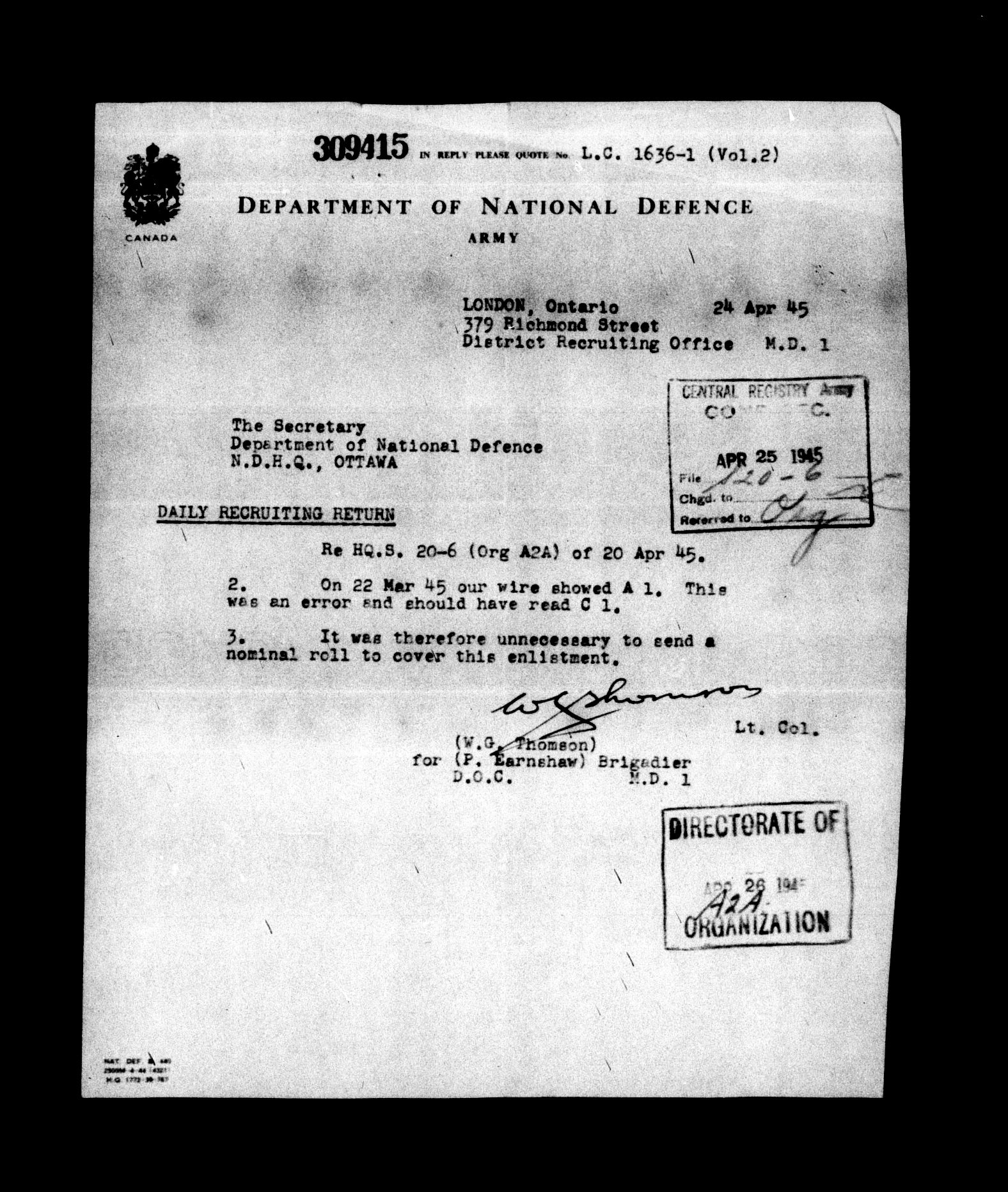 1946 Army Central Registry - 5501