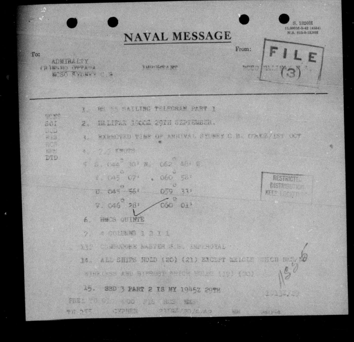 Royal Canadian Navy : Convoy Reports of Proceedings, 1939-1945 - 5511