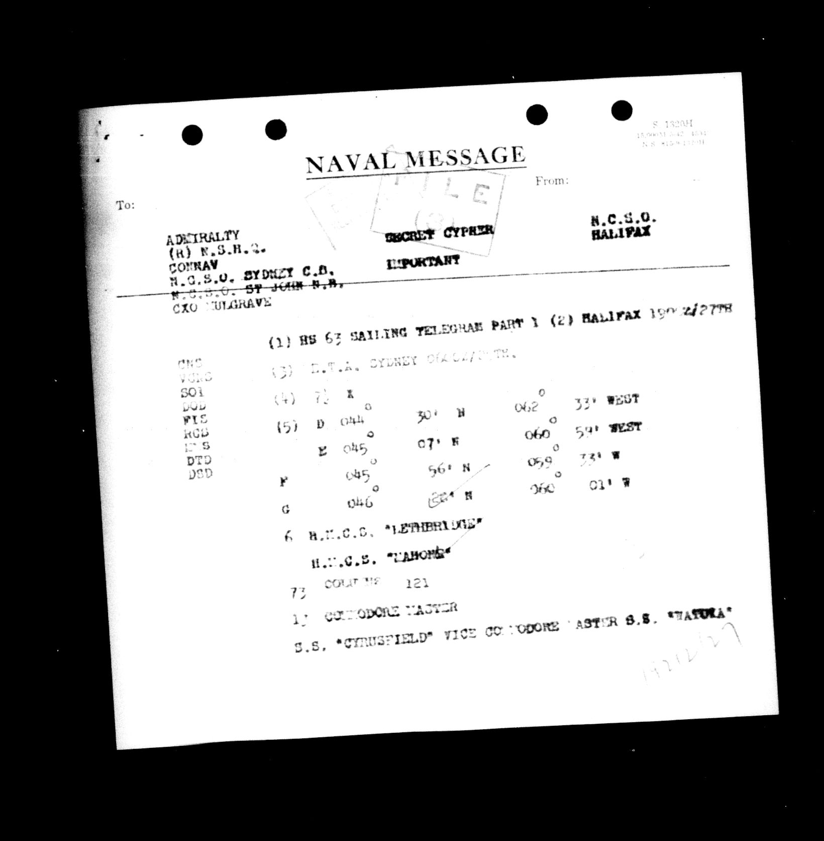 Royal Canadian Navy : Convoy Reports of Proceedings, 1939-1945 - 5512