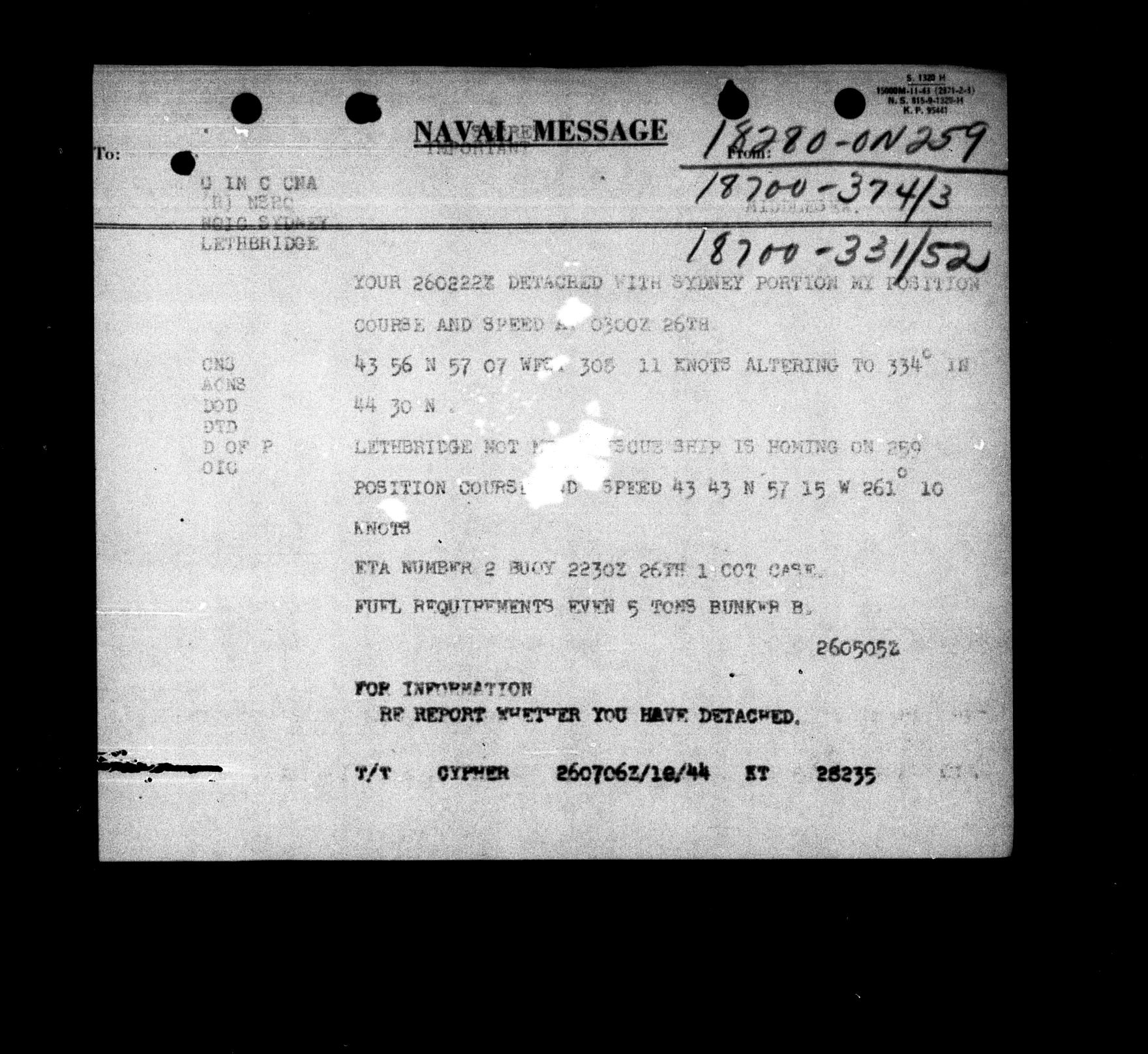 Royal Canadian Navy : Convoy Reports of Proceedings, 1939-1945 - 5525