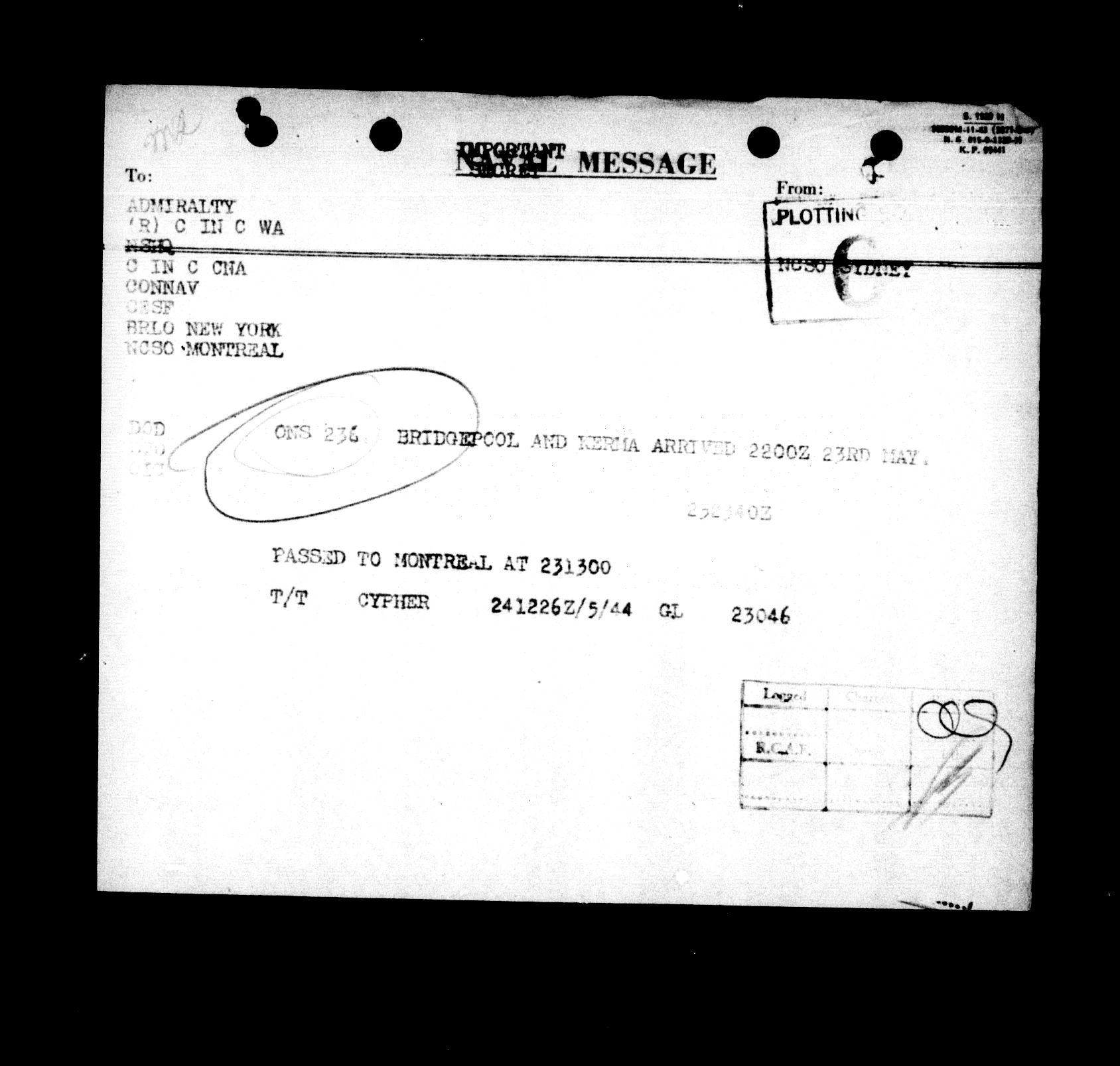 Royal Canadian Navy : Convoy Reports of Proceedings, 1939-1945 - 5530