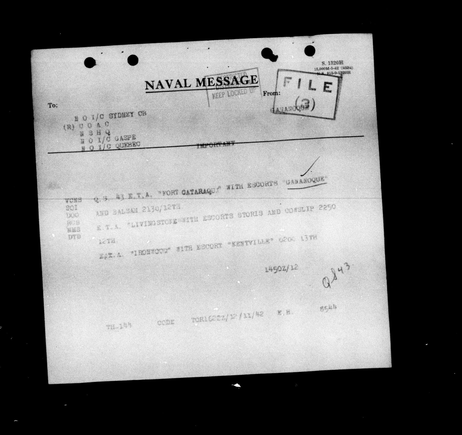 Royal Canadian Navy : Convoy Reports of Proceedings, 1939-1945 - 5531