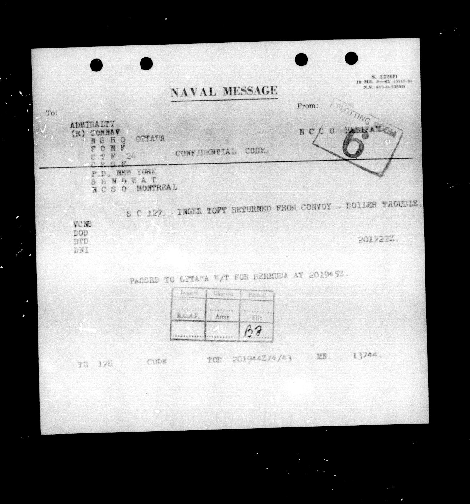 Royal Canadian Navy : Convoy Reports of Proceedings, 1939-1945 - 5533
