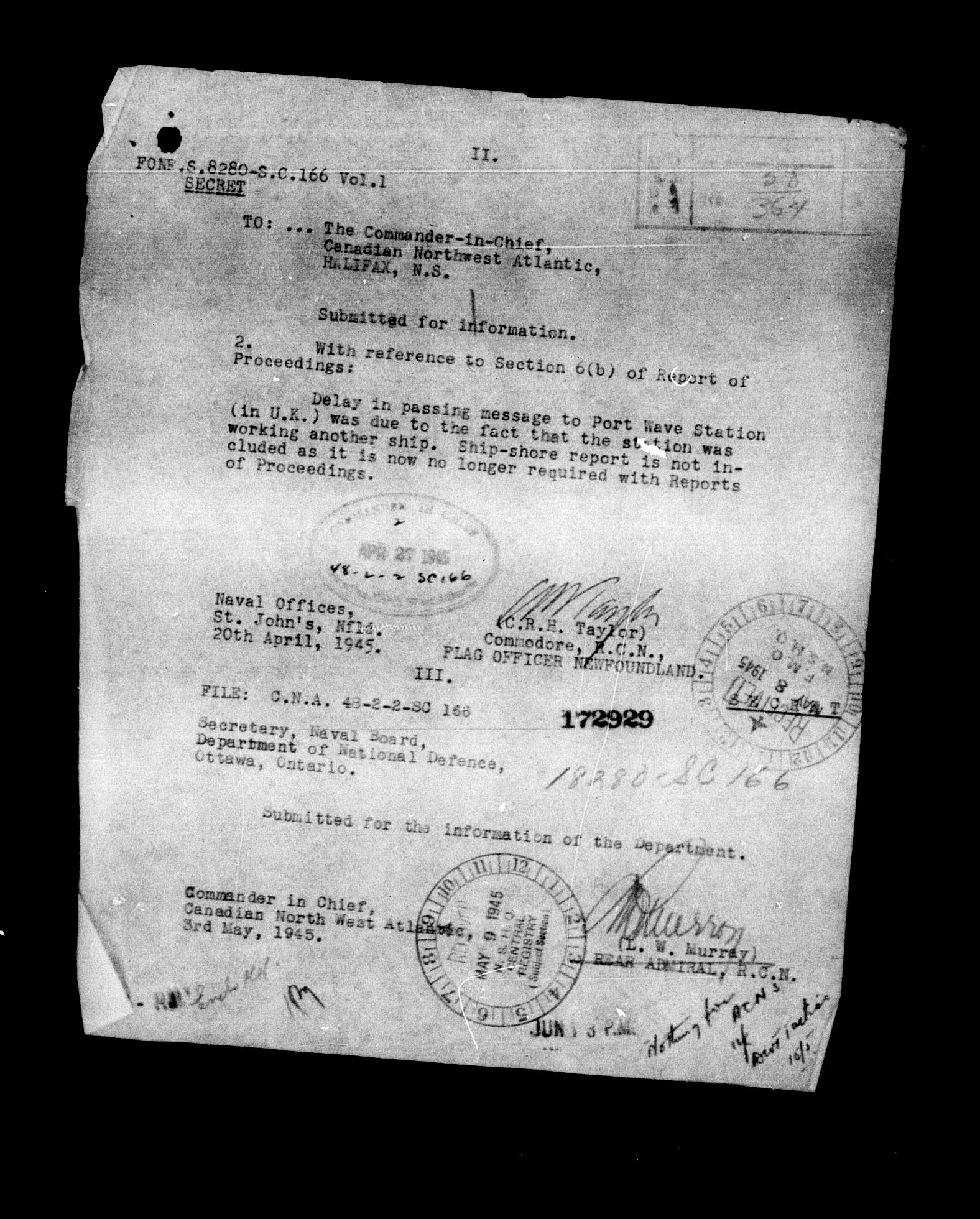 Royal Canadian Navy : Convoy Reports of Proceedings, 1939-1945 - 5533