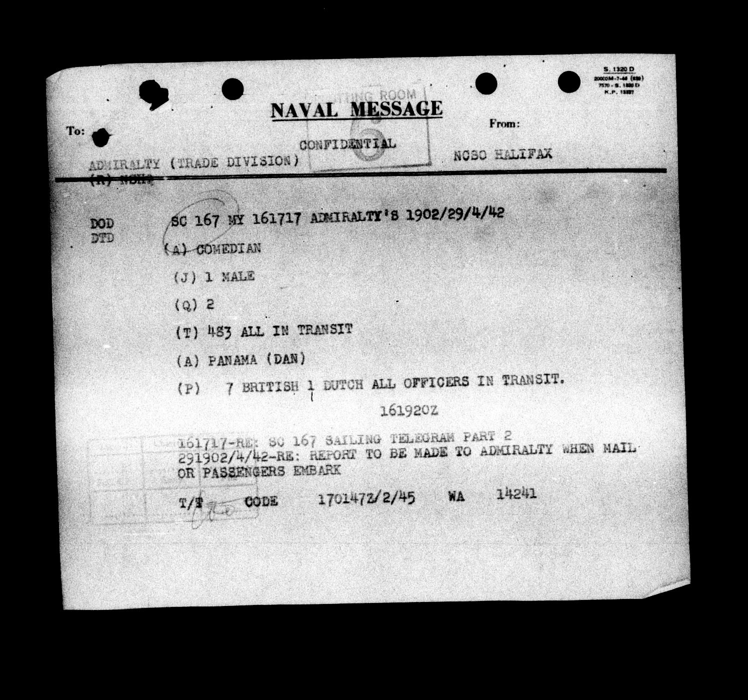 Royal Canadian Navy : Convoy Reports of Proceedings, 1939-1945 - 5534
