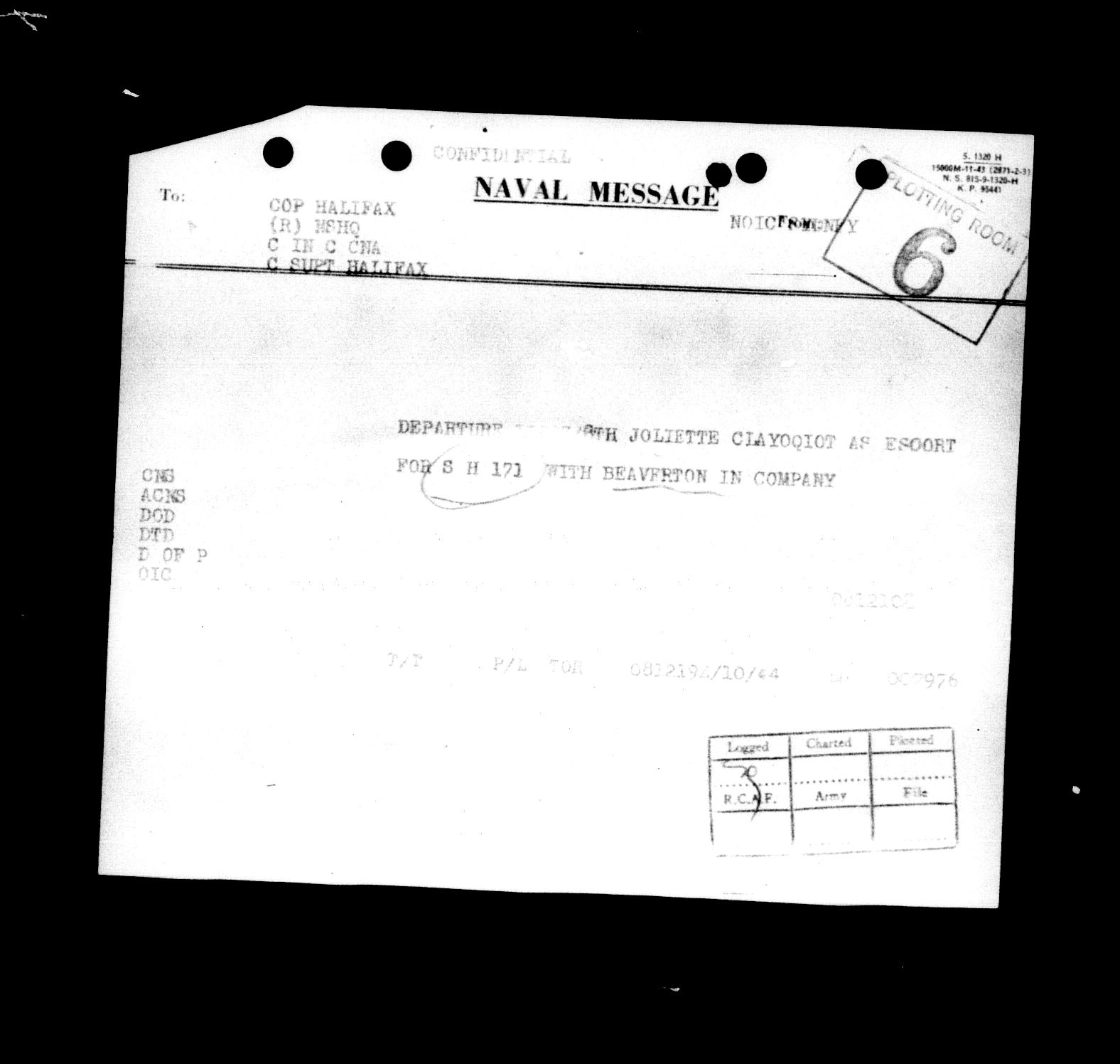 Royal Canadian Navy : Convoy Reports of Proceedings, 1939-1945 - 5534