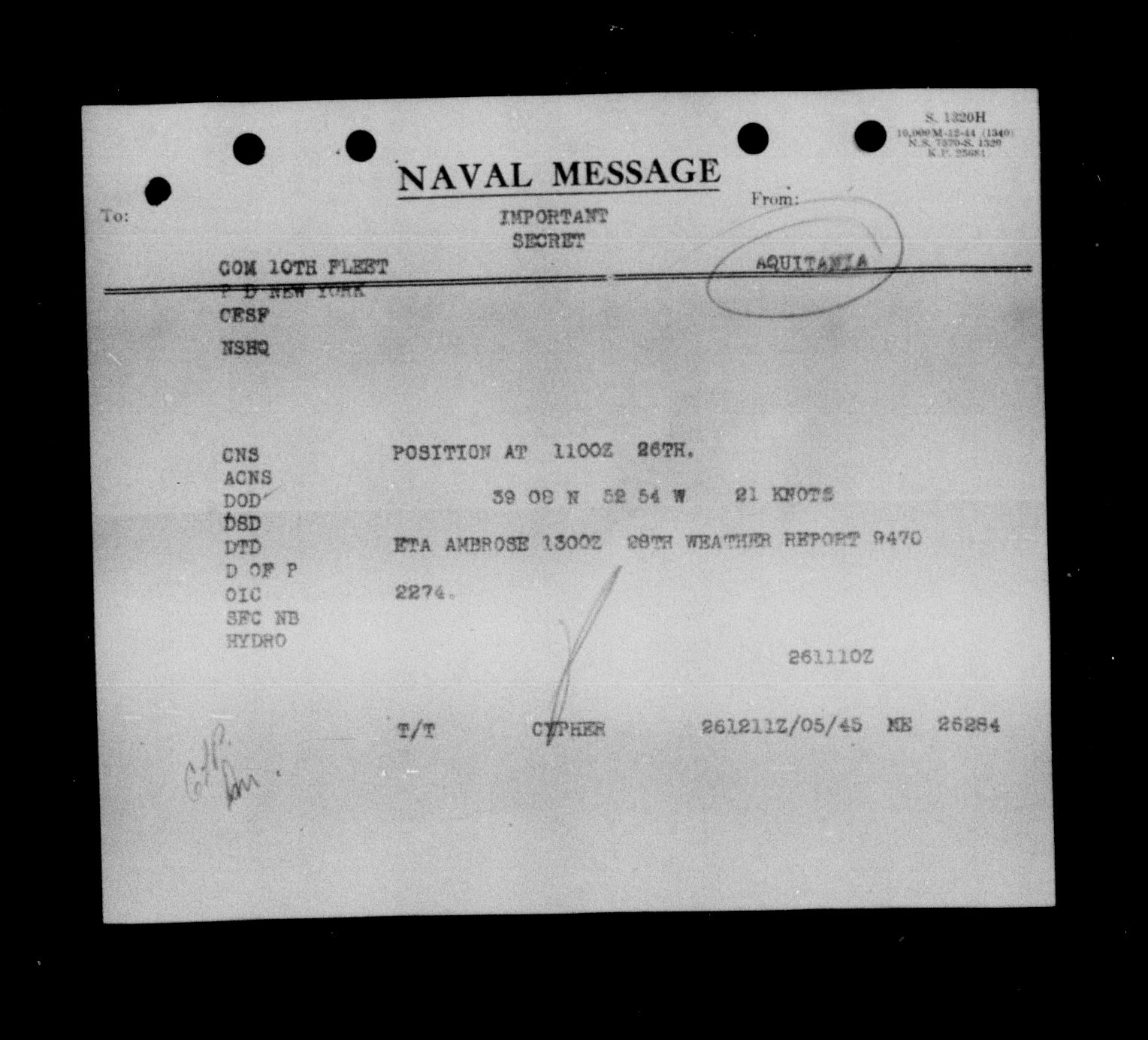 Royal Canadian Navy : Convoy Reports of Proceedings, 1939-1945 - 5537