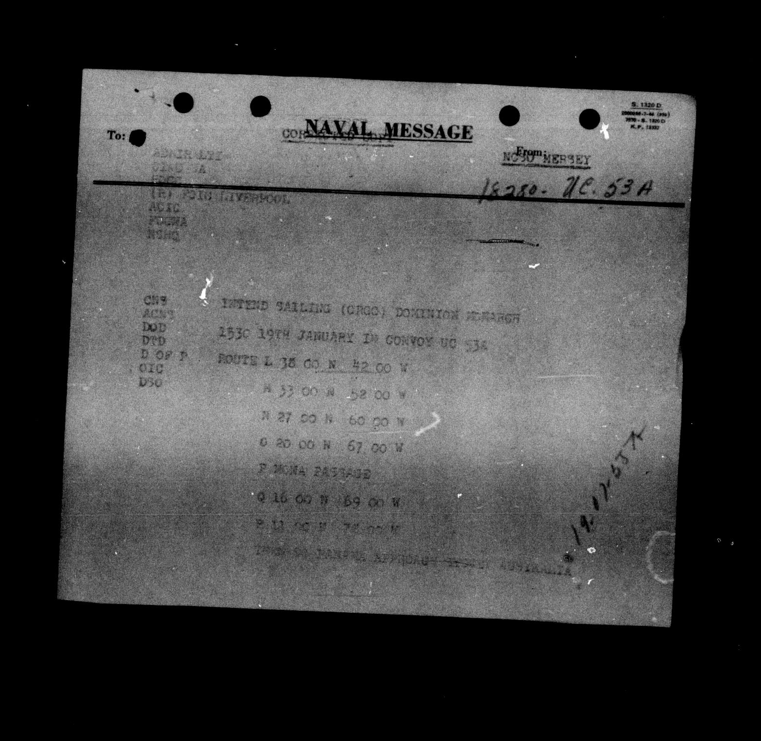 Royal Canadian Navy : Convoy Reports of Proceedings, 1939-1945 - 5537