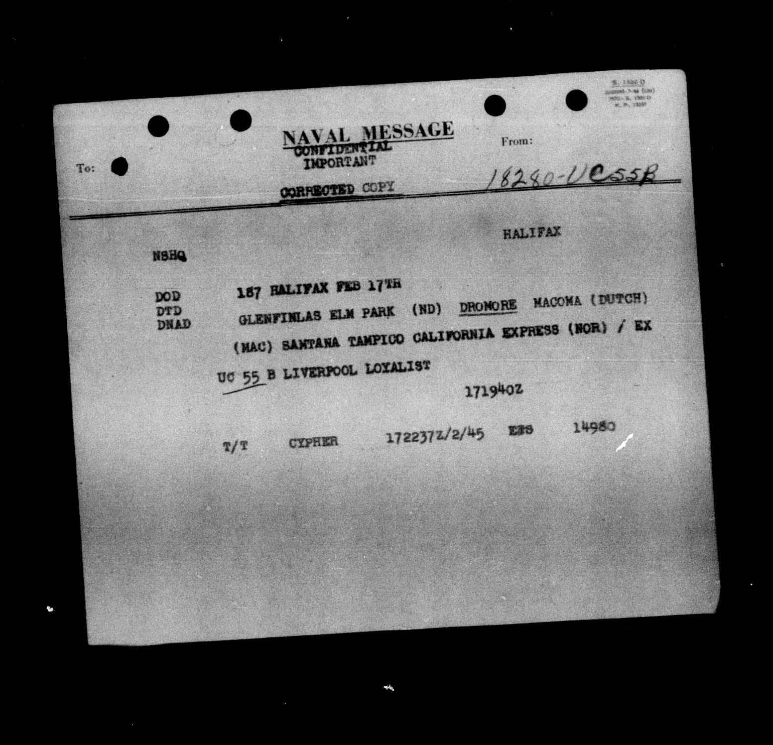 Royal Canadian Navy : Convoy Reports of Proceedings, 1939-1945 - 5538