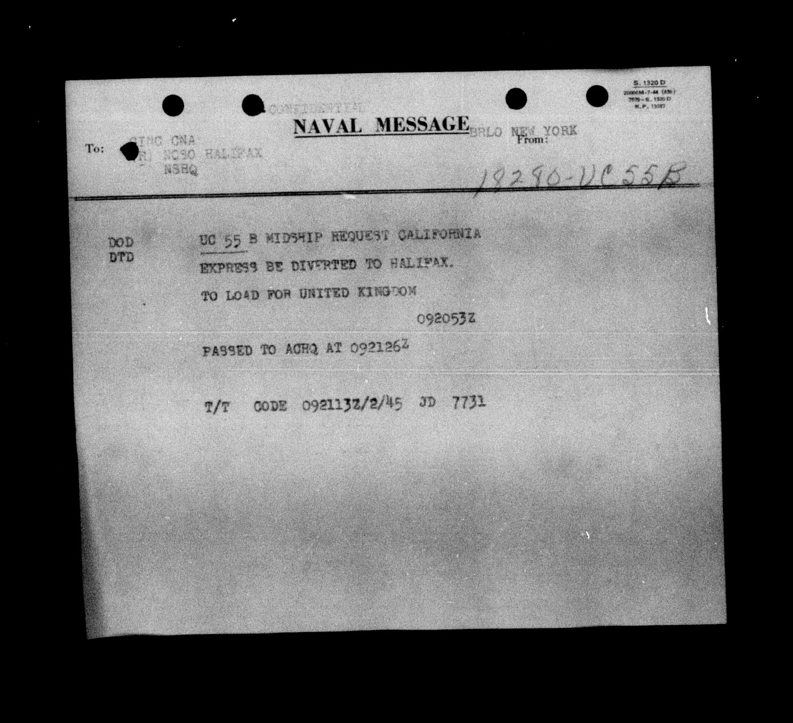 Royal Canadian Navy : Convoy Reports of Proceedings, 1939-1945 - 5538