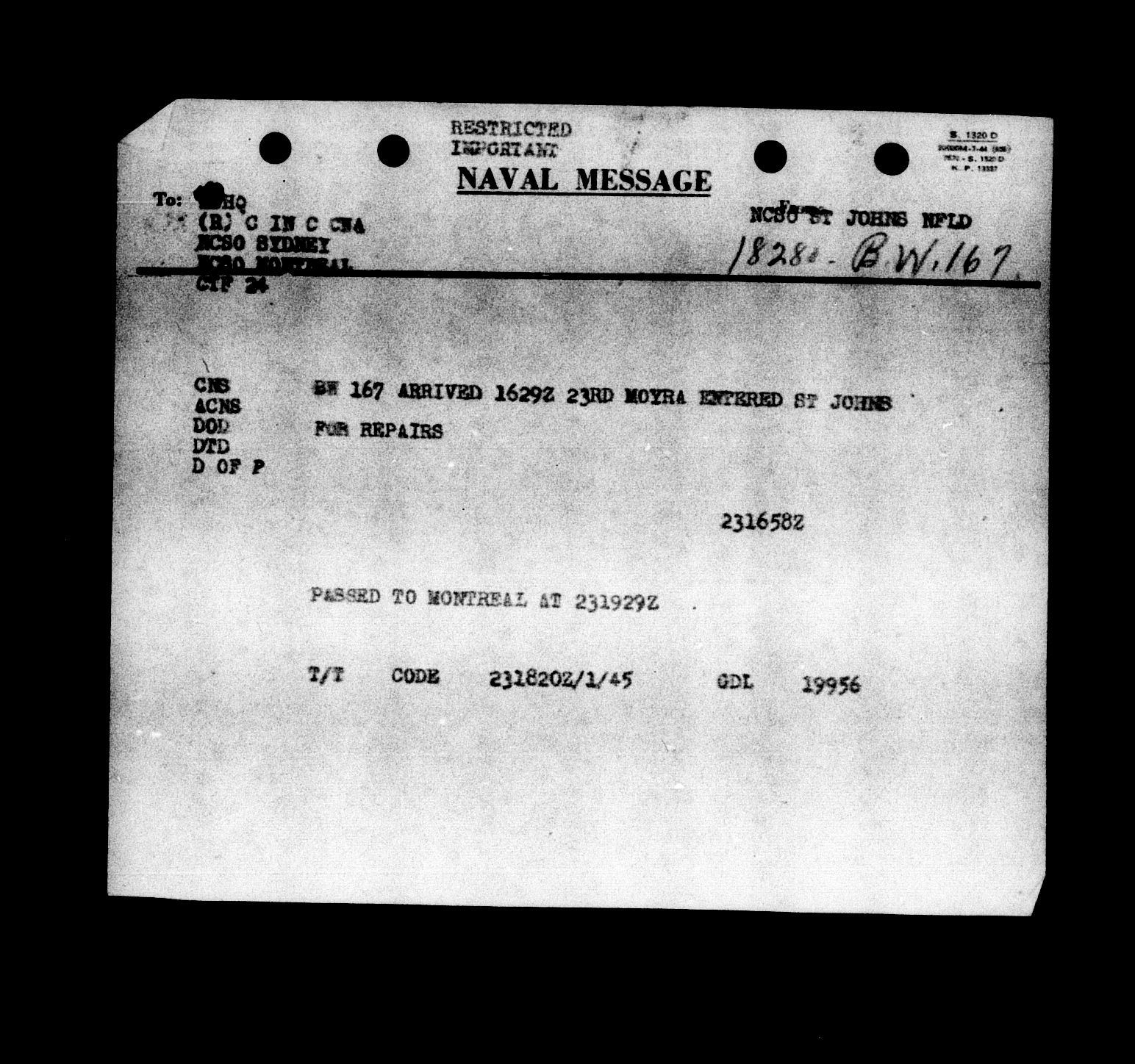 Royal Canadian Navy : Convoy Reports of Proceedings, 1939-1945 - 5541