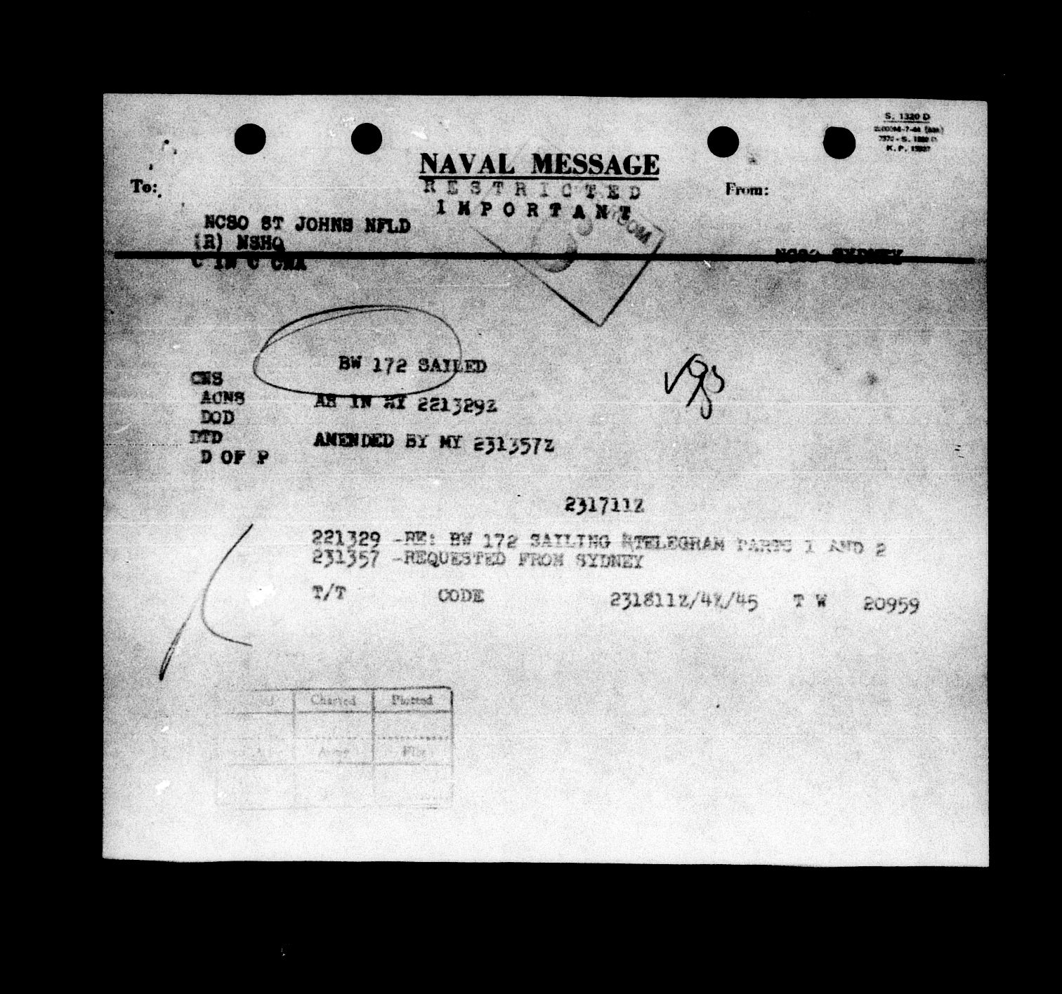 Royal Canadian Navy : Convoy Reports of Proceedings, 1939-1945 - 5541