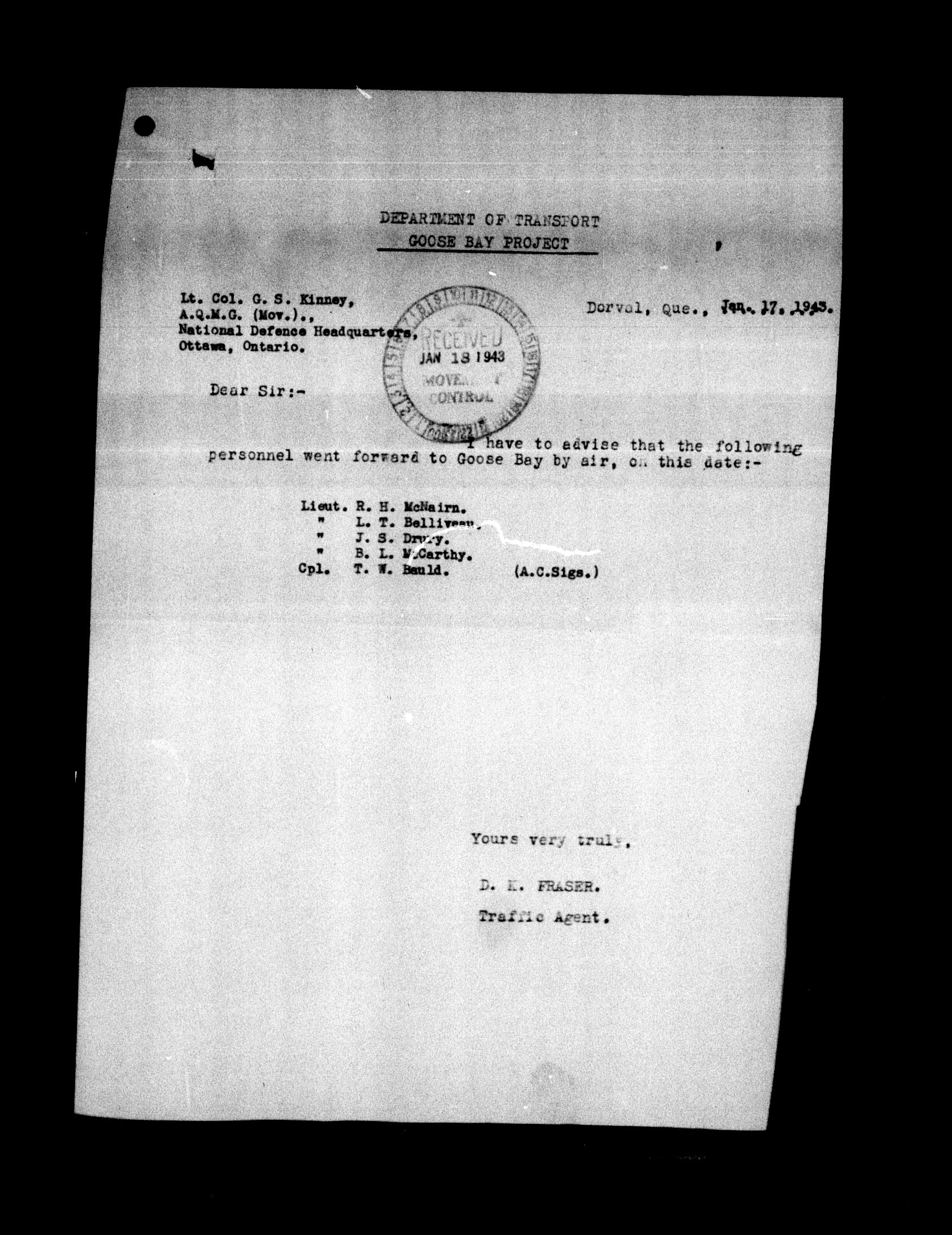 Directorate of Movements : Air files - 5551