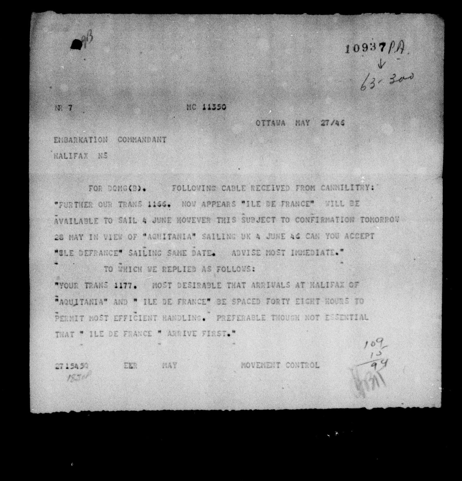 Directorate of Movements : Marine files - 5589