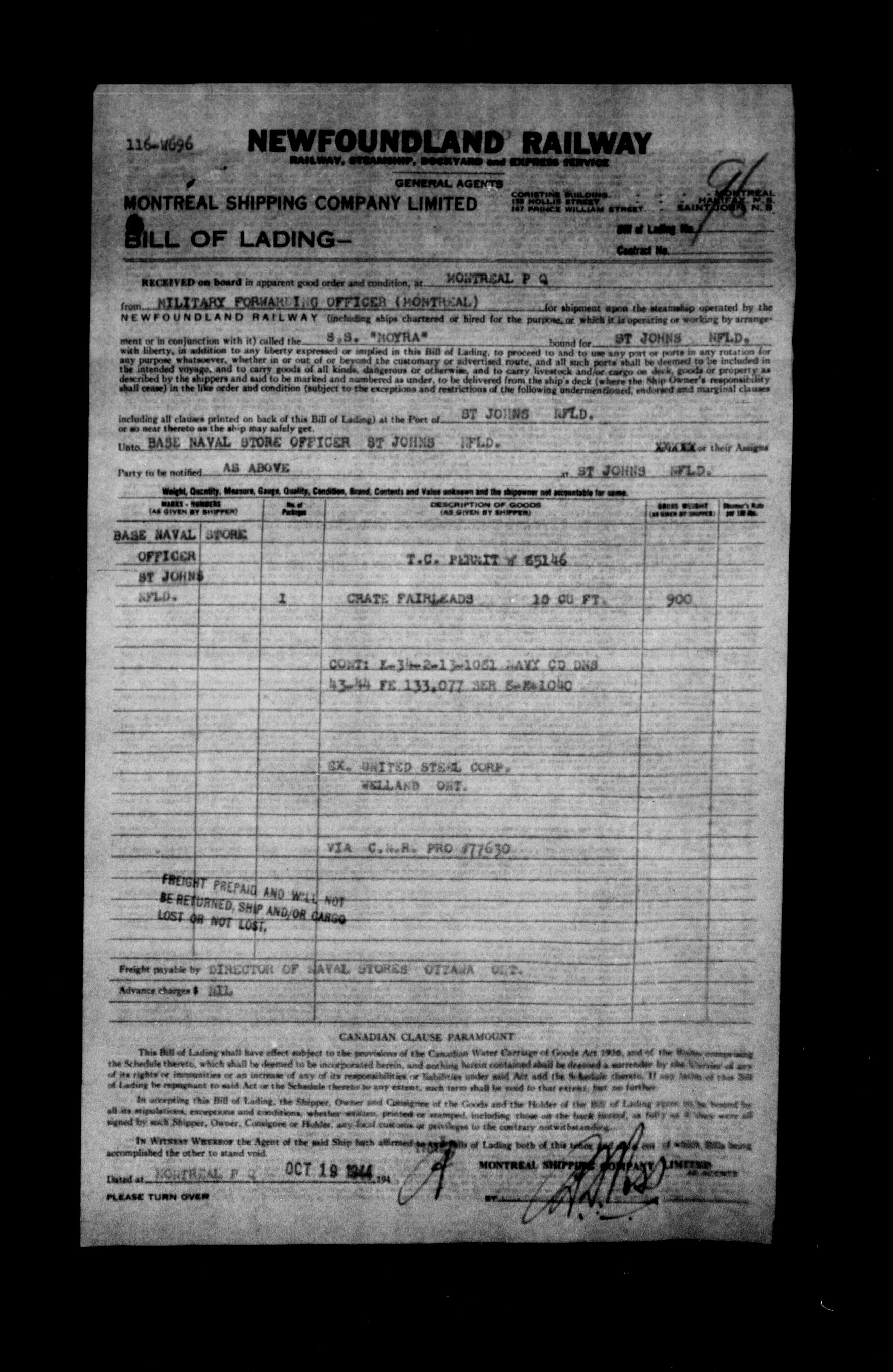 Directorate of Movements : Marine files - 5593
