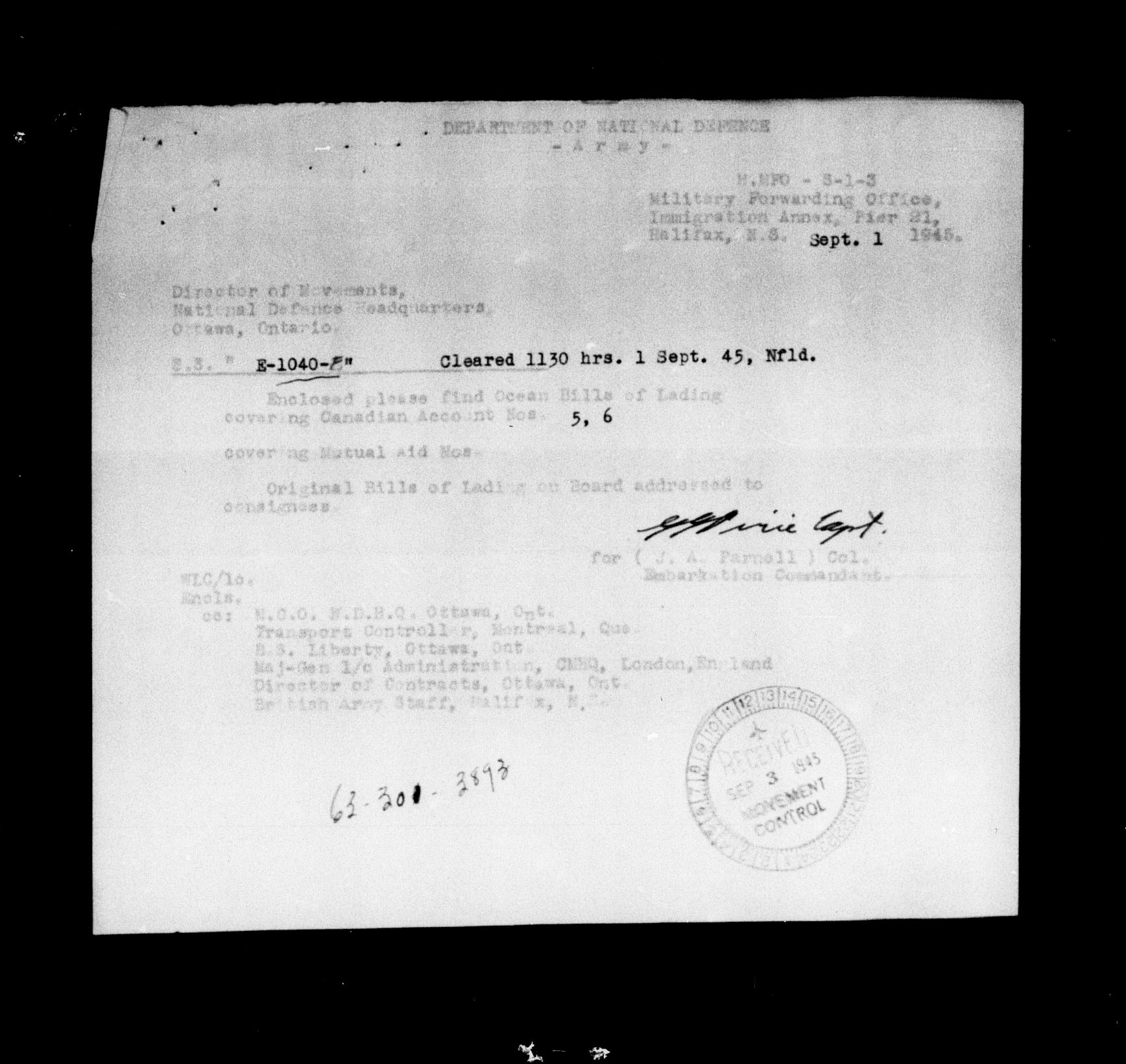 Directorate of Movements : Marine files - 5605
