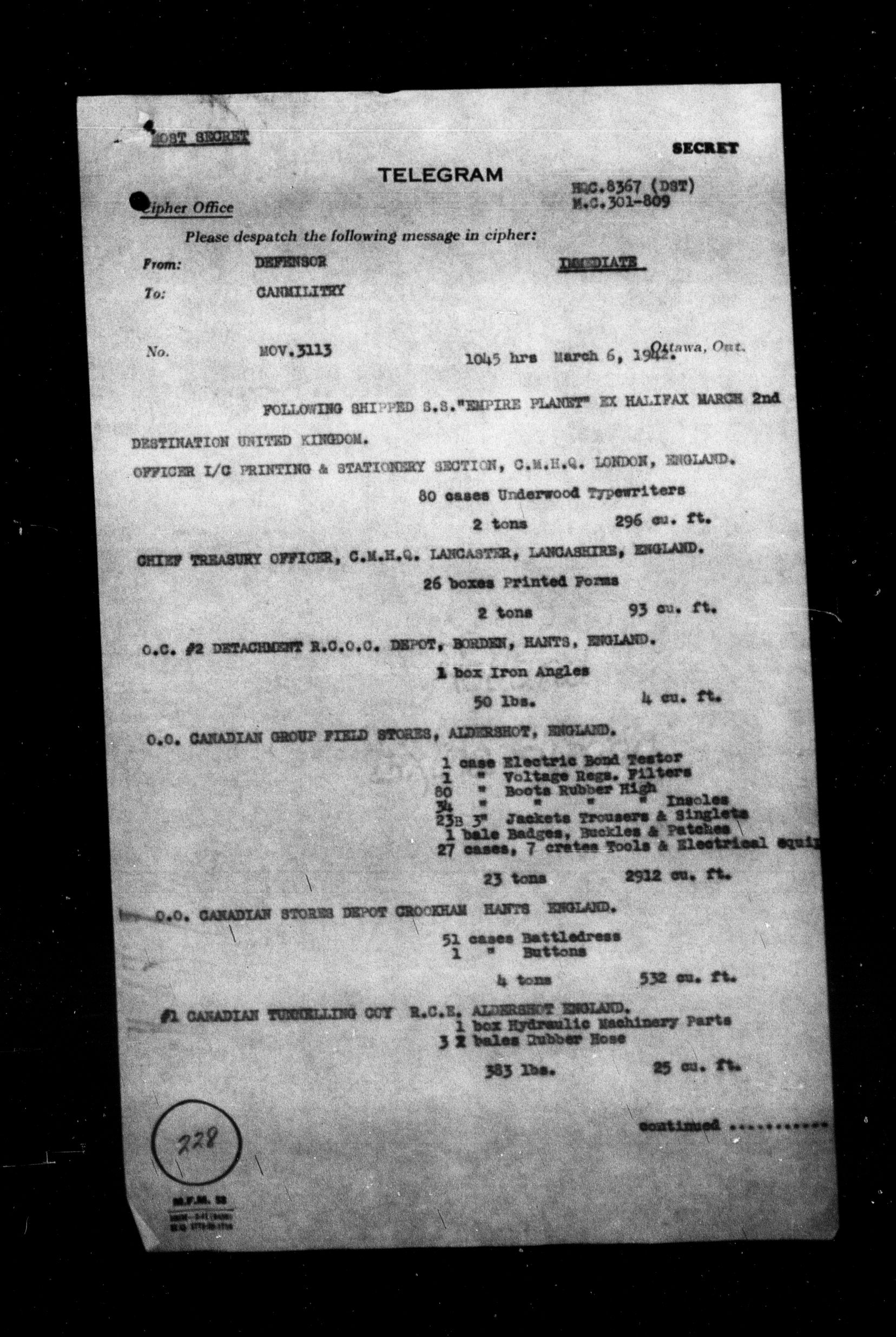 Directorate of Movements : C-5657