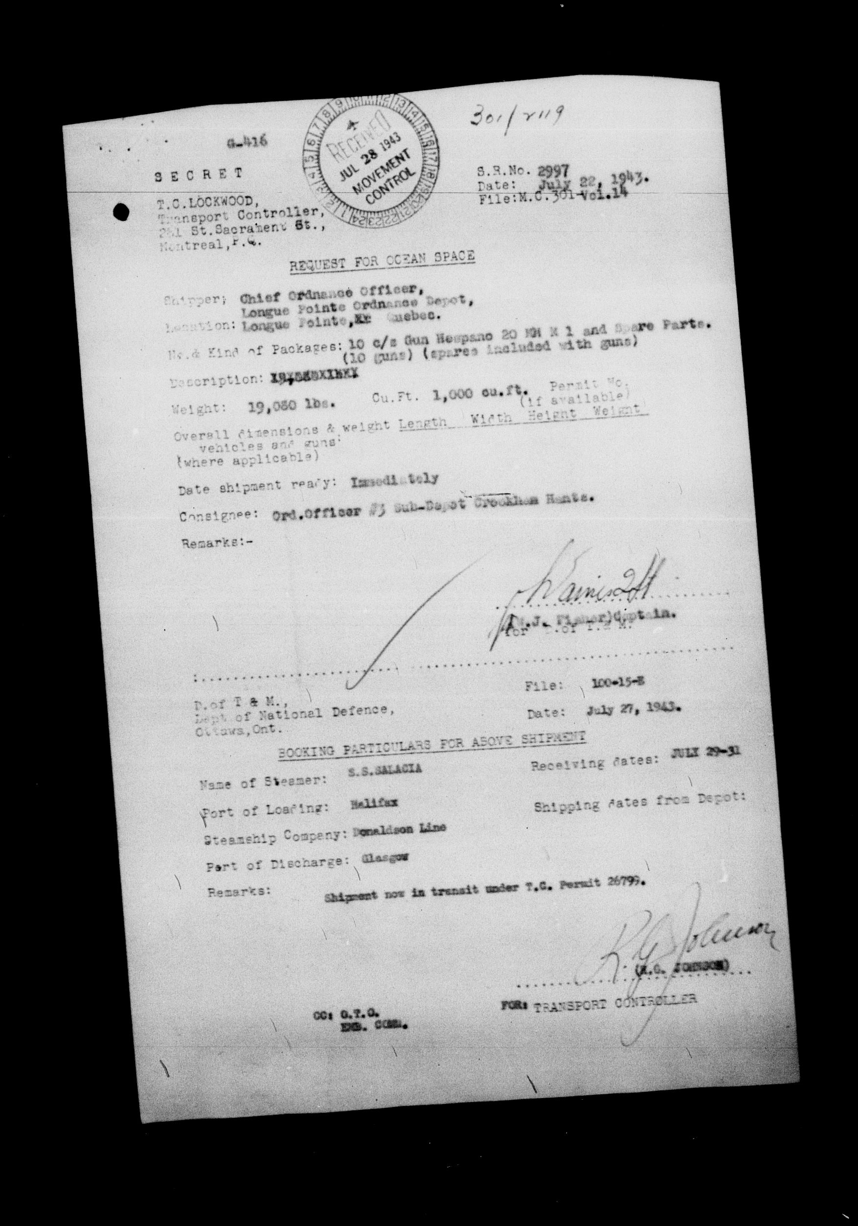 Directorate of Movements : Marine files - 5673