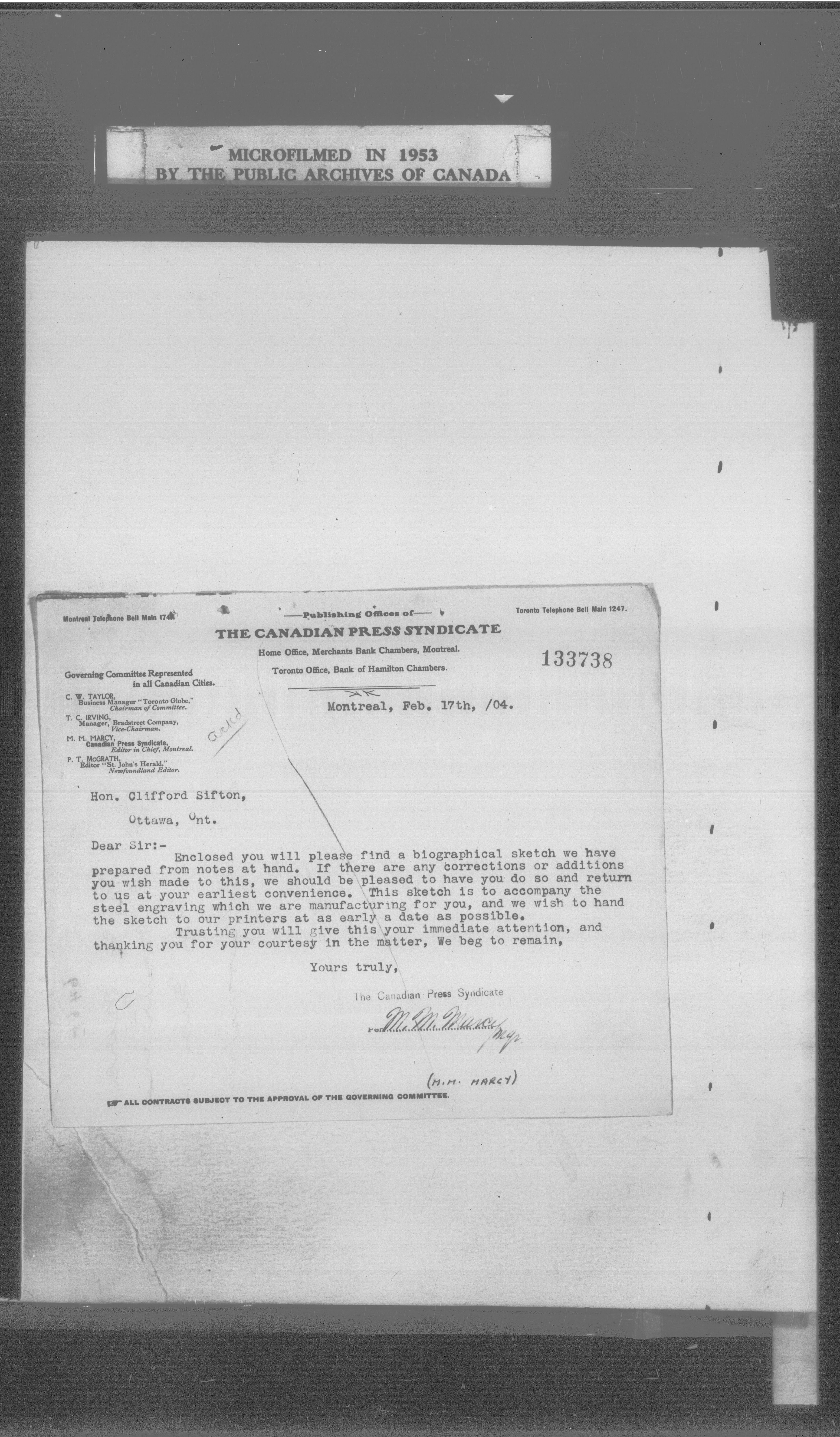 Sir Clifford Sifton Papers - 569