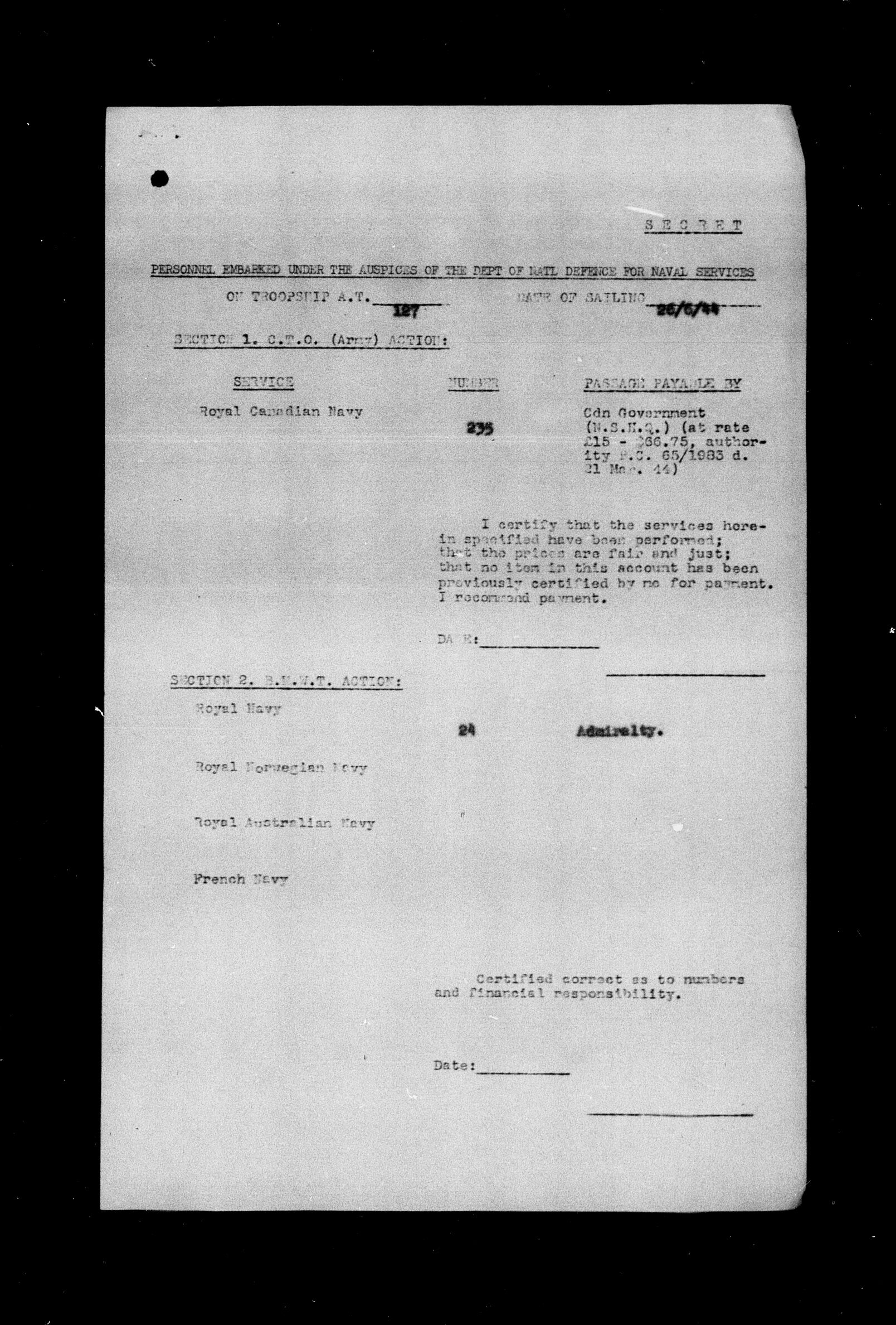 Eastbound Personnel - ABA - Port of Departure - Halifax - HQS 63-302-887