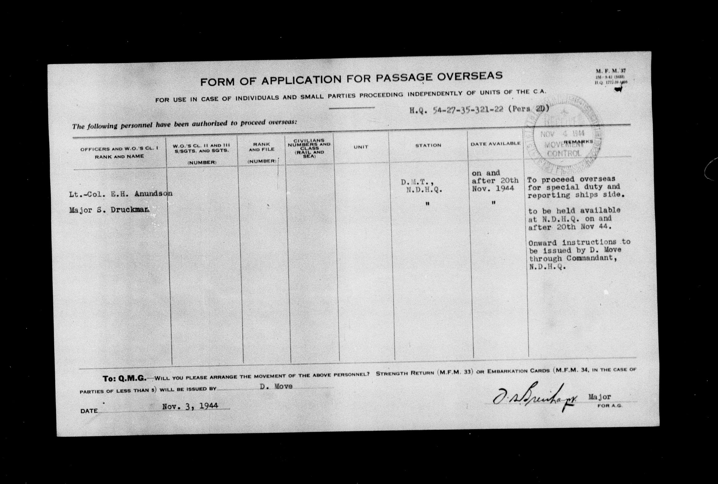 Eastbound Personnel - FORT TOWNSHEND- Port of Departure - Halifax - HQS 63-302-940