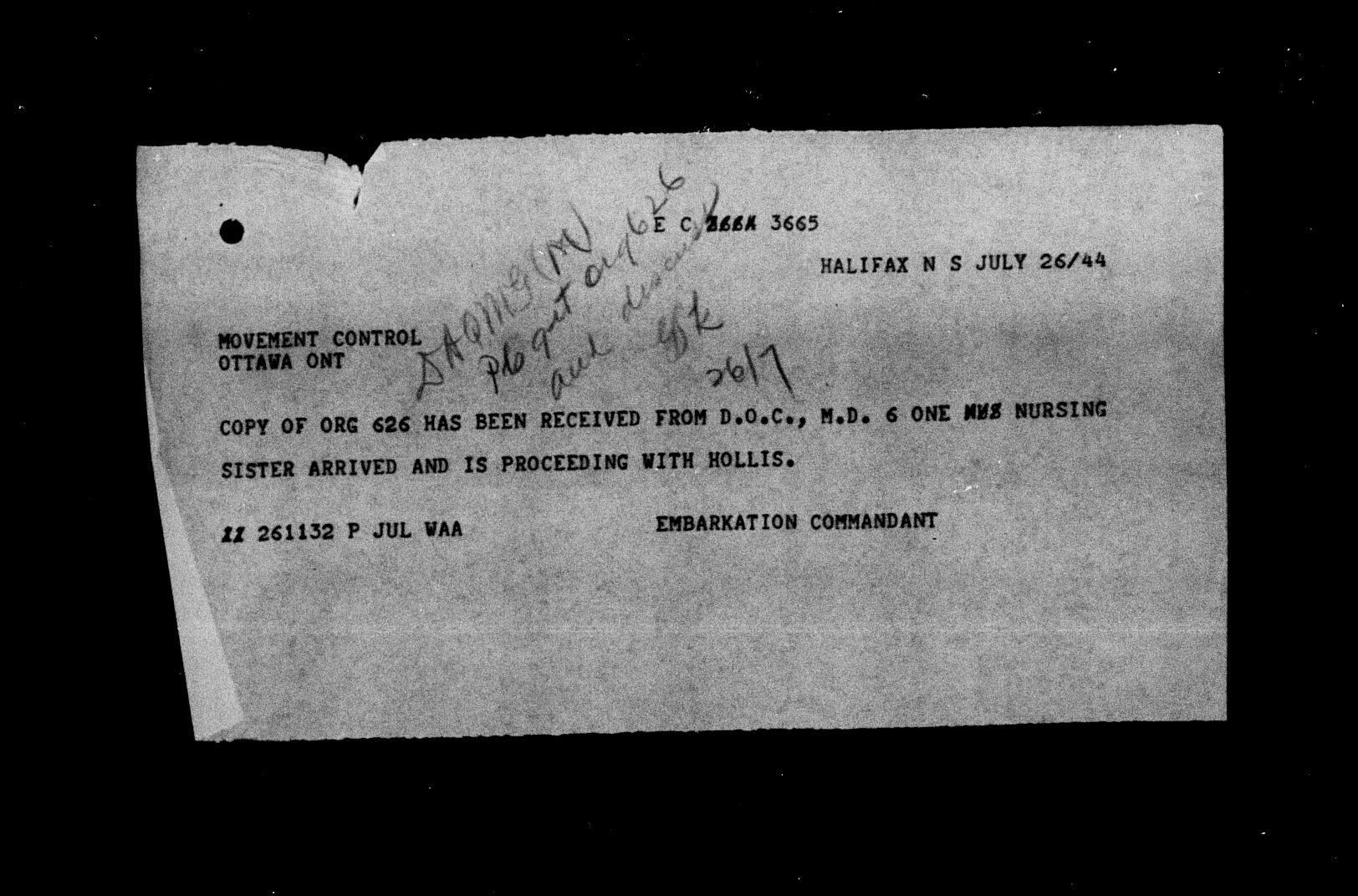 Eastbound Personnel - ABA - Port of Departure - Halifax - HQS 63-302-938