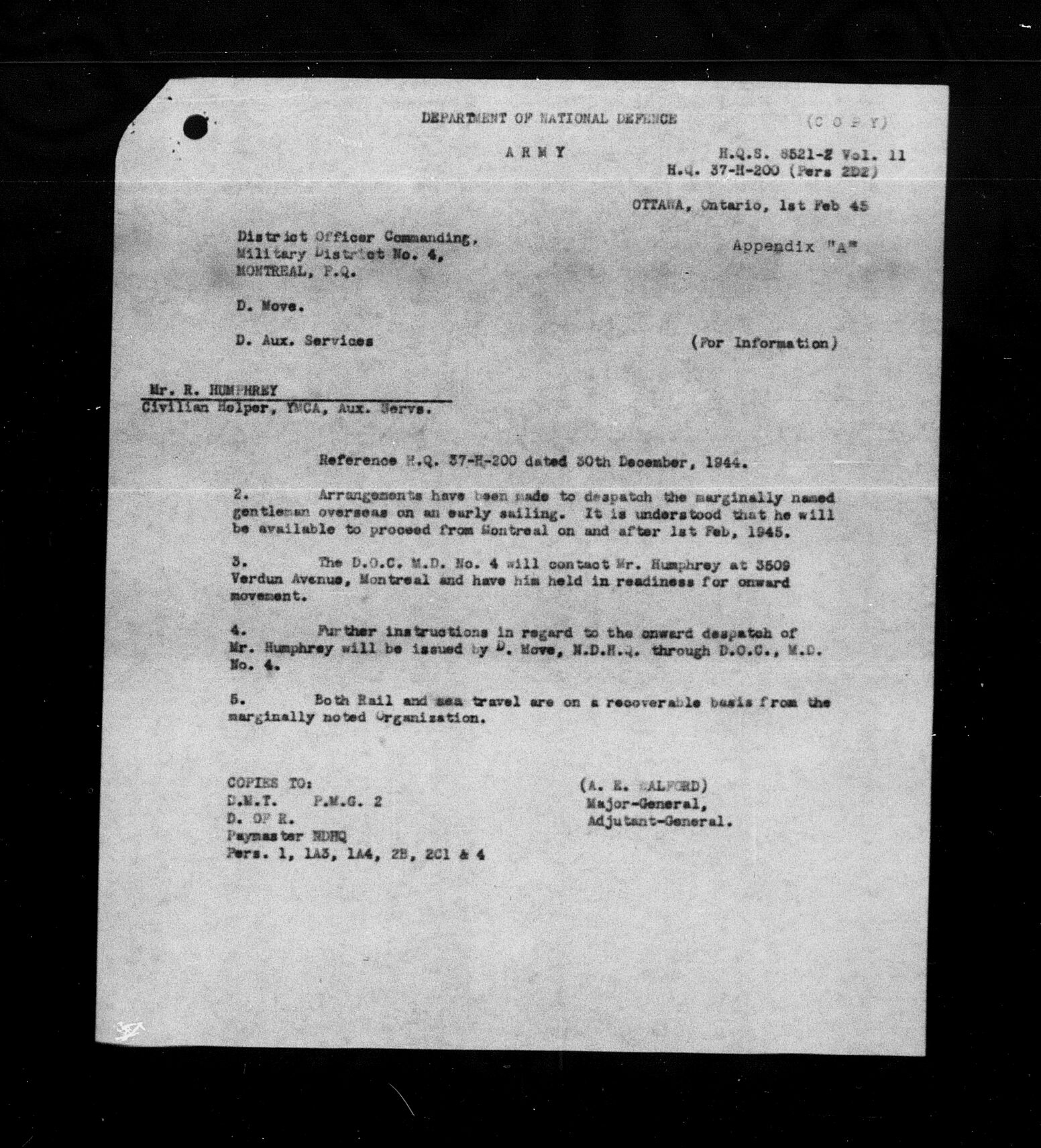 Eastbound Personnel - FORT TOWNSHEND - Port of Departure - Halifax - HQS 63-302-993