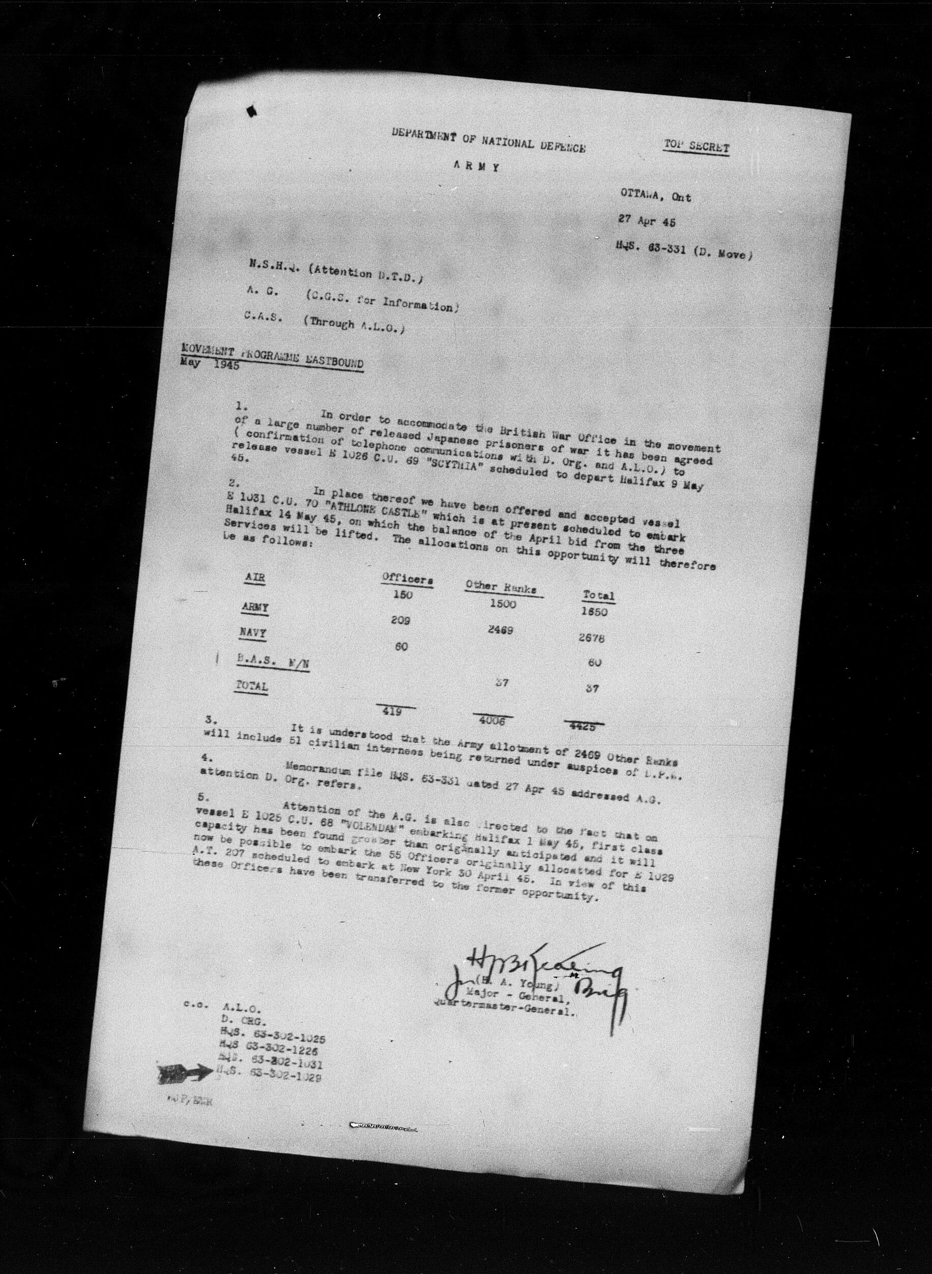 Eastbound Personnel - ERRIA - Port of Departure - Halifax - HQS 63-302-1003