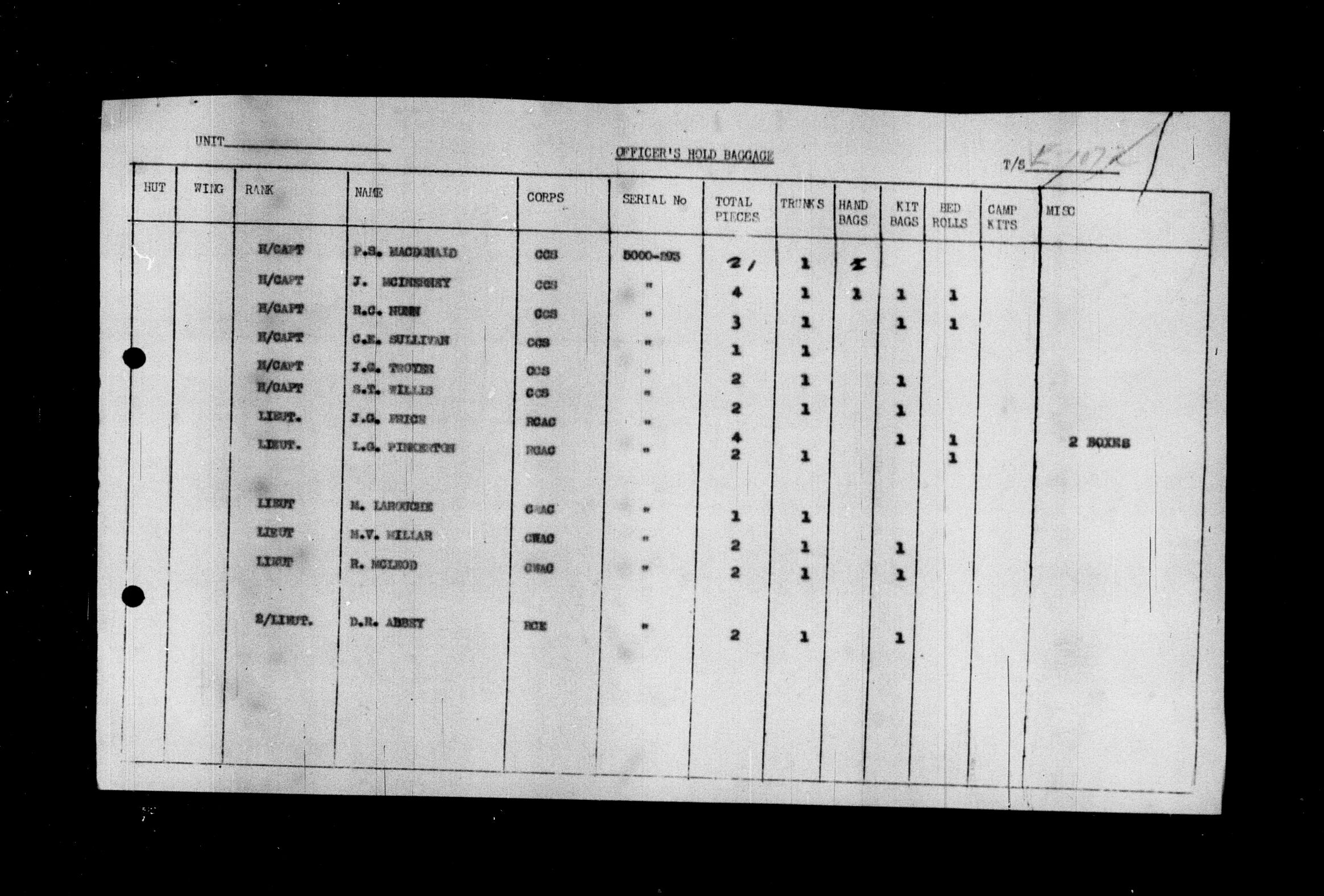 Eastbound Personnel - EL NIL - Port of Departure - Halifax - HQS 63-302-1058
