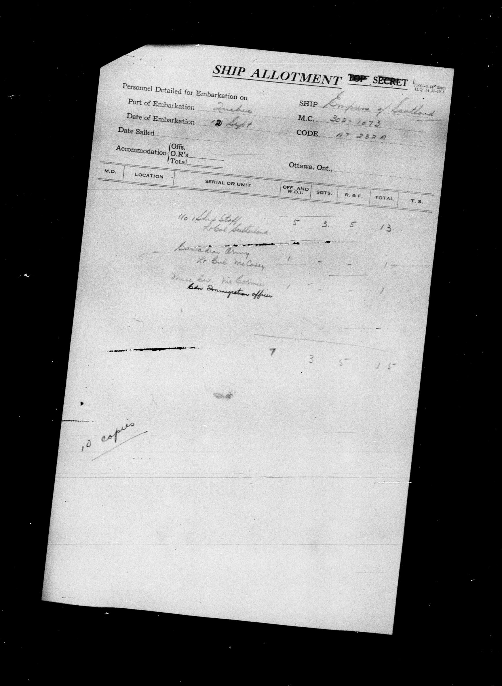 Eastbound Personnel - SAMARIA - Port of Departure - Québec - Convoy AT-230a [USA to United Kingdom (Troops)] - HQS 63-302-1069