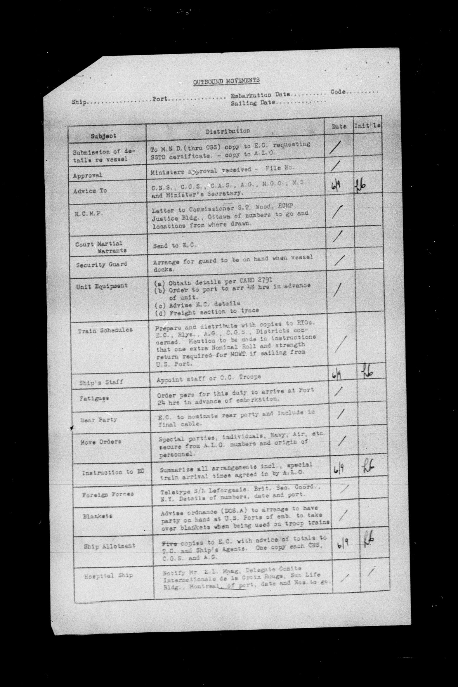 Eastbound Personnel - DUCHESS OF RICHMOND - Port of Departure - Québec - Convoy AT-226c [USA to United Kingdom (Troops)] - HQC 63-302-1065