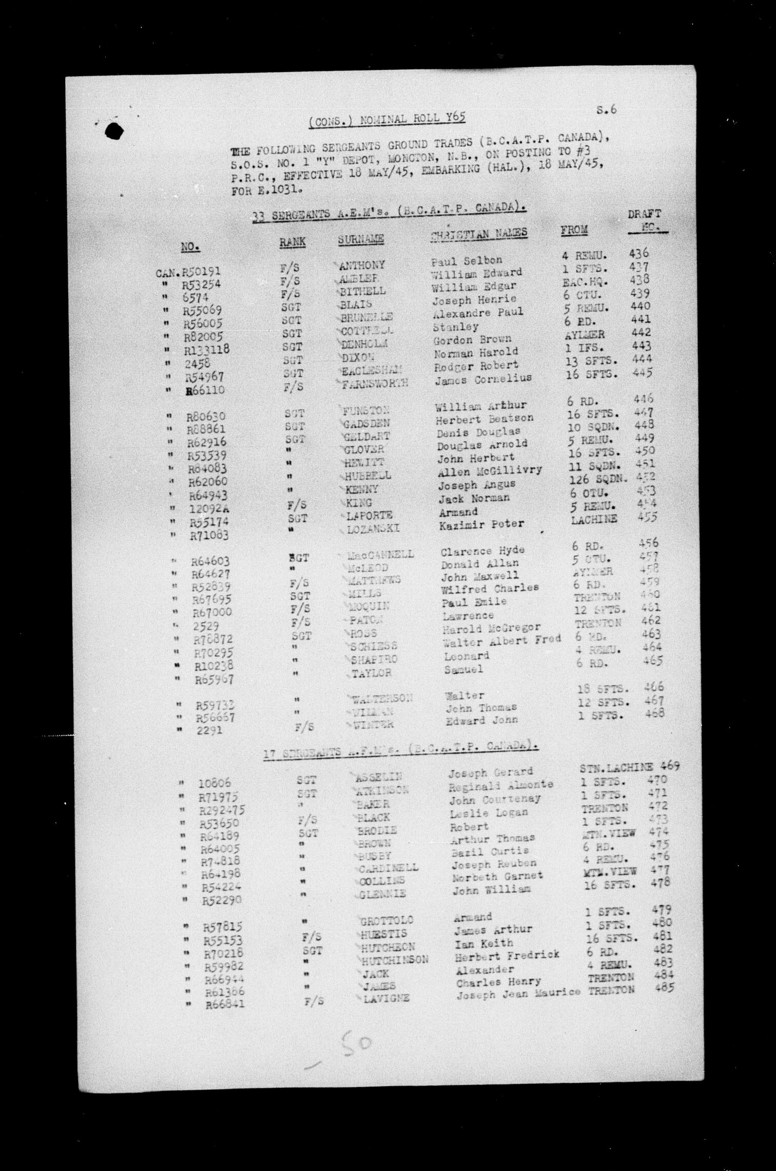 Eastbound Personnel - EL NIL - Port of Departure - Halifax - HQS 63-302-1058