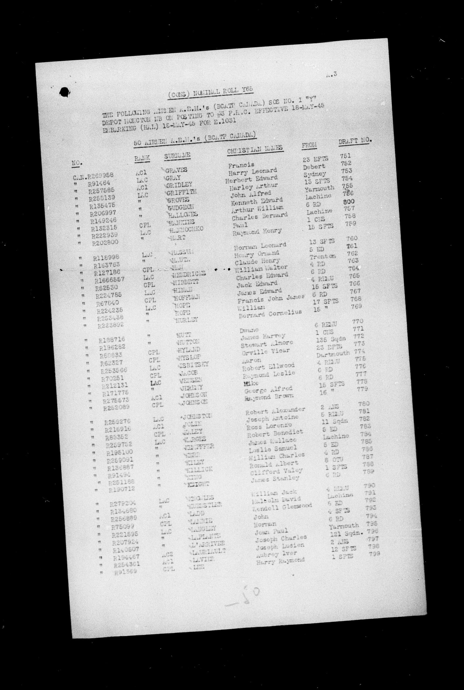 Eastbound Personnel - LADY NELSON - Port of Departure - Halifax - HQS 63-302-1046