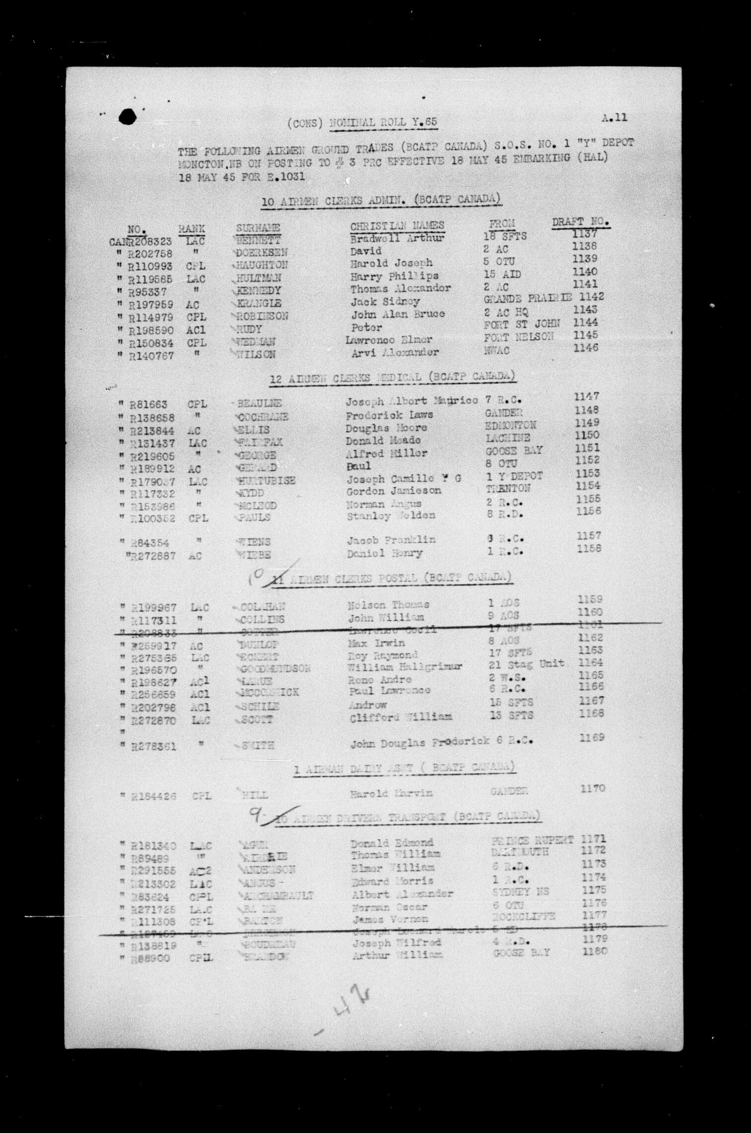 Eastbound Personnel - EL NIL - Port of Departure - Halifax - HQS 63-302-1058